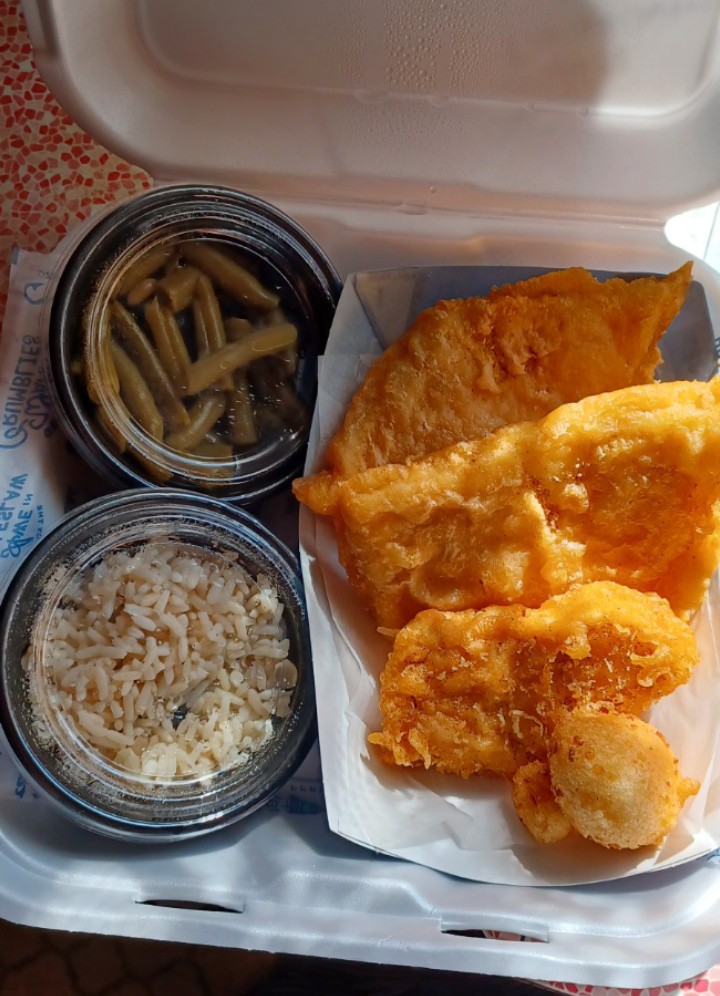 The result? The food was pretty dang good. Not the best fish or anything, but certainly not the worst fast food place. I got the platter with the hush puppies, fish, chicken, shrimp, and waffle cut fries. It was all pretty good and well-seasoned.