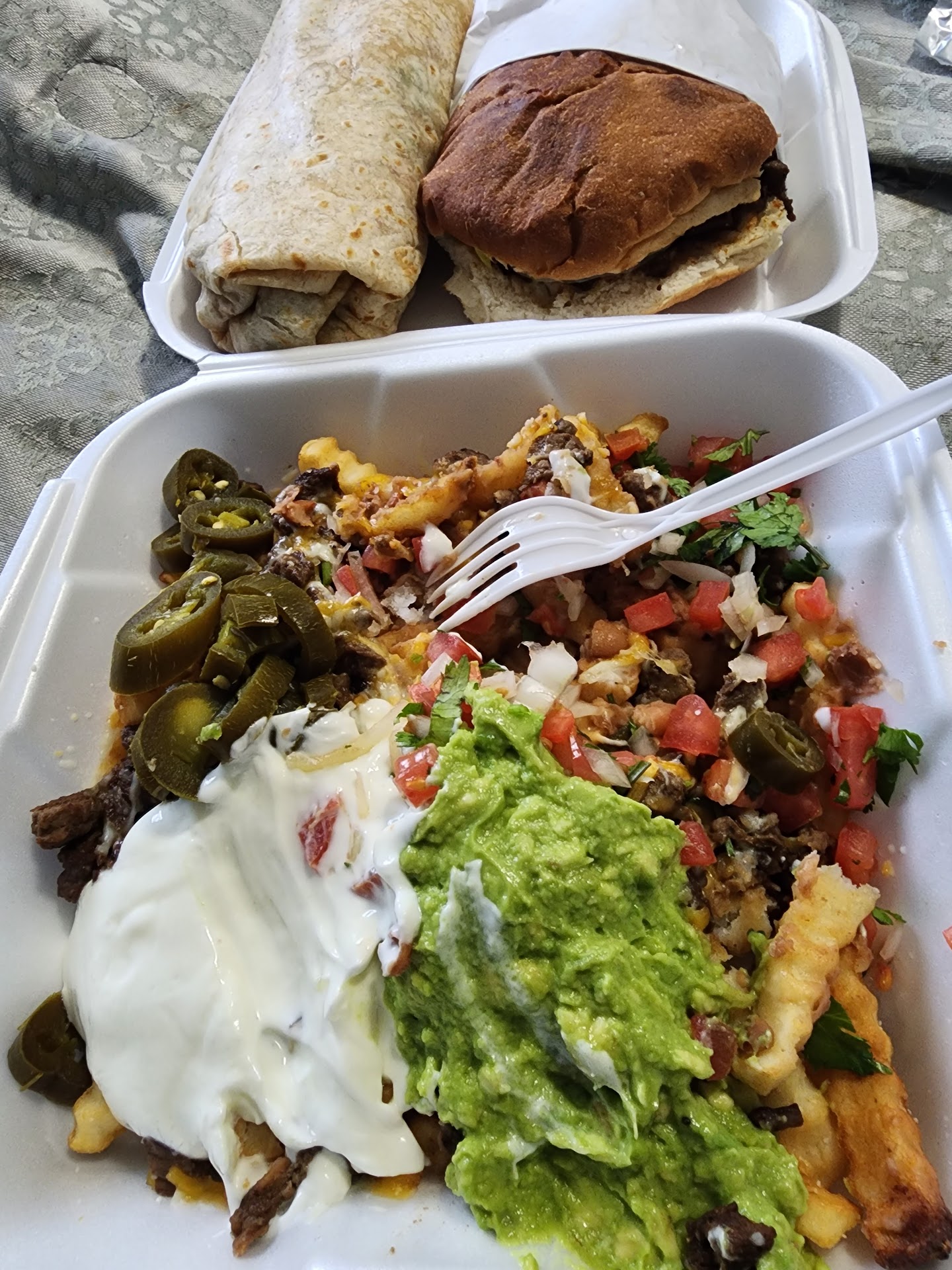 I ordered Asada Fries and a small horchata to-go. I received one green and red salsa with the order. I tried the salsas and both were pretty watery and lacking some kick to it, especially the green salsa. The order was pretty abundant, but it lacked an umph. The beans tasted as if they were canned beans. The meat is pretty decent. The horchata was also watery and pretty powdery.