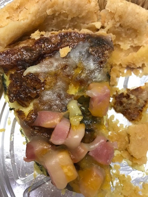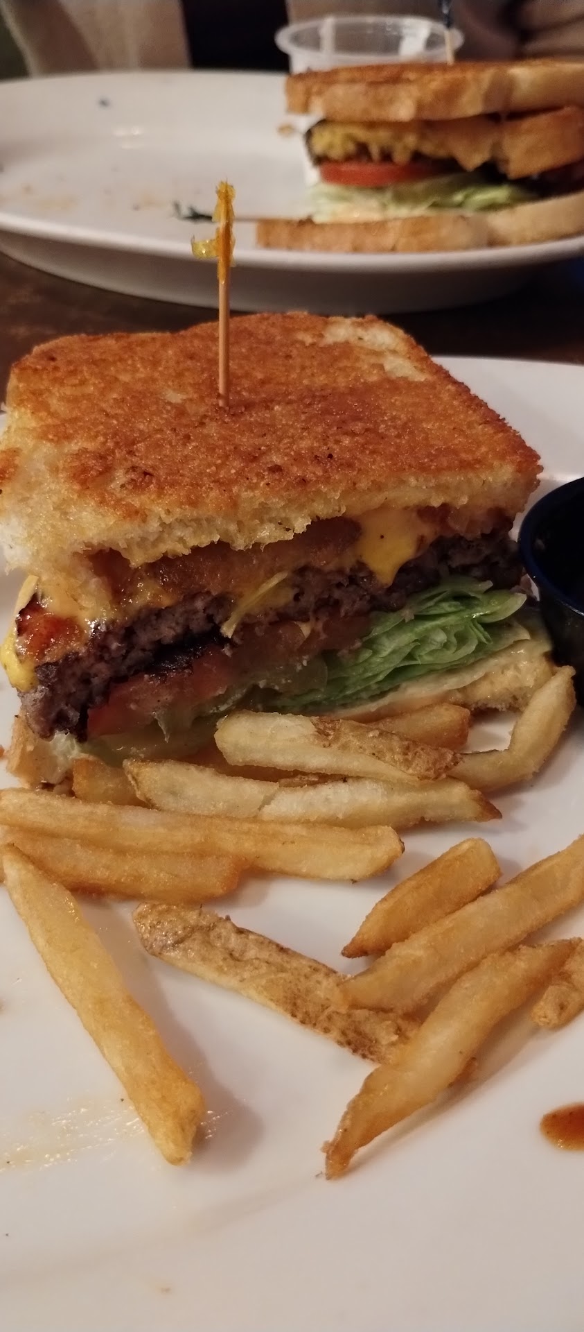 I had the sourdough meatloaf sandwich and my wife had the chicken pot pie. We both had the potato cream soup. Everything was bland. All the food required generous applications of salt, pepper, and Tabasco sauce to maintain our interest. This was very unusual for my wife. The food reminded me of convalescent hospital fair. The pies we both order were good.