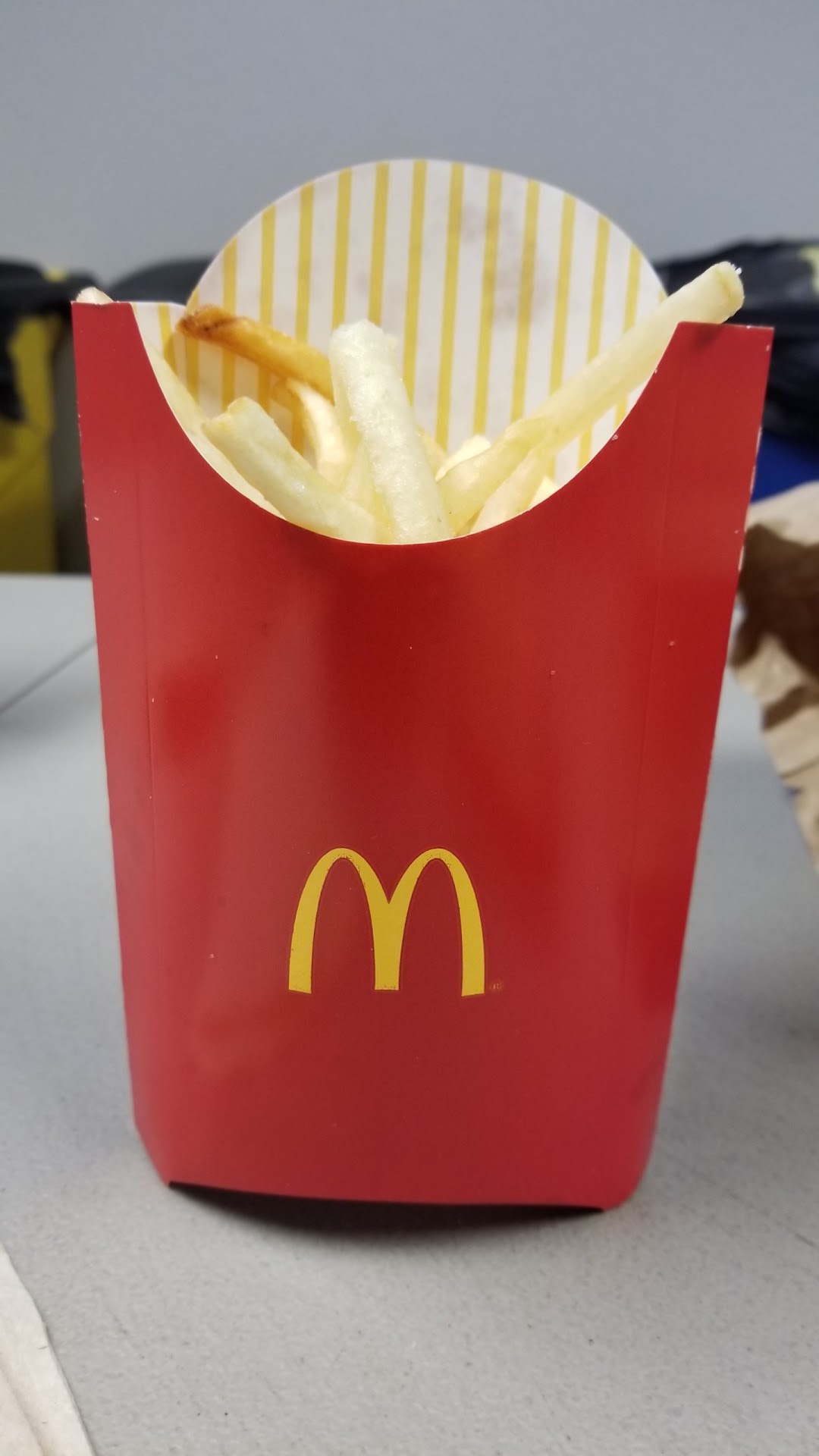 When I got there, I pulled up to the ordering kiosk and explained the situation to an employee. He told me to come to the drive-through, so I did. After speaking to him again at the drive-through speaker, he told me to meet the manager at the first window. I waited there for about five minutes until the employee came up and asked if I was missing just one medium fry. I told him it was a medium fry and two small fries.