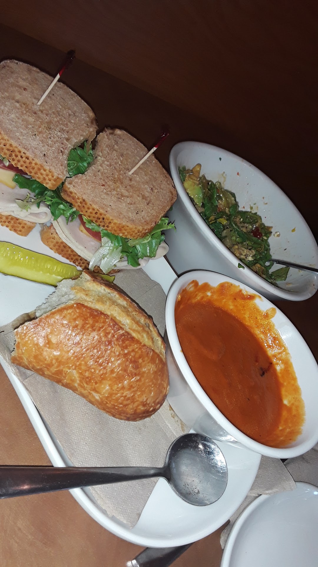 The customer service is usually cheerful and attentive. But if you are not a customer that spends money, they know who you are. The ones who spend money on a regular basis are acknowledged courteously with a big smile and, "How are you today?" I'm usually acknowledged with a demeaning attitude, not only from staff, but the stuck up crowd that hounds the place. One day, ordering from my Sip Club, the cashier says sarcastically, 'Just coffee, right?' Well, I rarely eat an early breakfast but usually begin my day with a healthy smoothie and then coffee. I didn't appreciate the attitude but was not surprised by it. Instead, I sit, defrost from exercising in the cold with a hot coffee, then leave to go train some more. But anyway, the restaurant has a pleasant ambience, most of the time, but it comes with a warning, 😂 . I've had people sit across from me and slam their Bibles down loudly on the table, glaring over at me, as if they have a part in my spiritual destination. I had this one woman walk past my table and hiss, Witch!, under her breath. I have had several times people put out their leg to trip me. I've had people sit around me and just laugh like their losing their minds, all together. I figured out where their spiritual destination might be. 😂 Well, I have the "Sip Club" and get billed monthly. I am a regular customer but now I cross myself and my table before venturing in. I love the lemonade and have to tell you , it's worth every penny. If you like sour and tasty, this lemonade is it! A good meal is the Broccoli Cheese Bread Bowl Soup. It needs spices but once you add them it tastes almost homemade. I've had their margherita pizza and it was not tasty. It tasted like it was packaged. Definitely not fresh vegetables but microwaved. Today, I ordered the Chipotle Avocado Chicken Sandwich and Mac n Cheese; $22. I am very disappointed and feel ripped off. There was hardly any chicken on it at all and two half slices of avocado. The chicken was shredded and didn't even cover the bread. It was very dry and you'd need extra saliva just to swallow it. The Mac and cheese was $8 and filled barely halfway in the bowl, equivalent to one full scoop at a deli. I thought there had been a mistake and even asked but was told that was the $8 bowl. The macaroni is good and gooey just like the gooey Kraft Mac n Cheese. For $22, I could have ordered a large pizza at Round Table in the Packwood Shopping Center. For $14, I could have had the all-you-can-eat lunch buffet at Sizzler. And, the margherita pizza at Fugazzi's Pizza is so scrumptious there is absolutely no comparison to it! None. The one solid five star for Panera is their breads and pastry. Oh a man just walked past me and spelled out a-s-s-ole at me. Must have read the reviews on the hacked...
