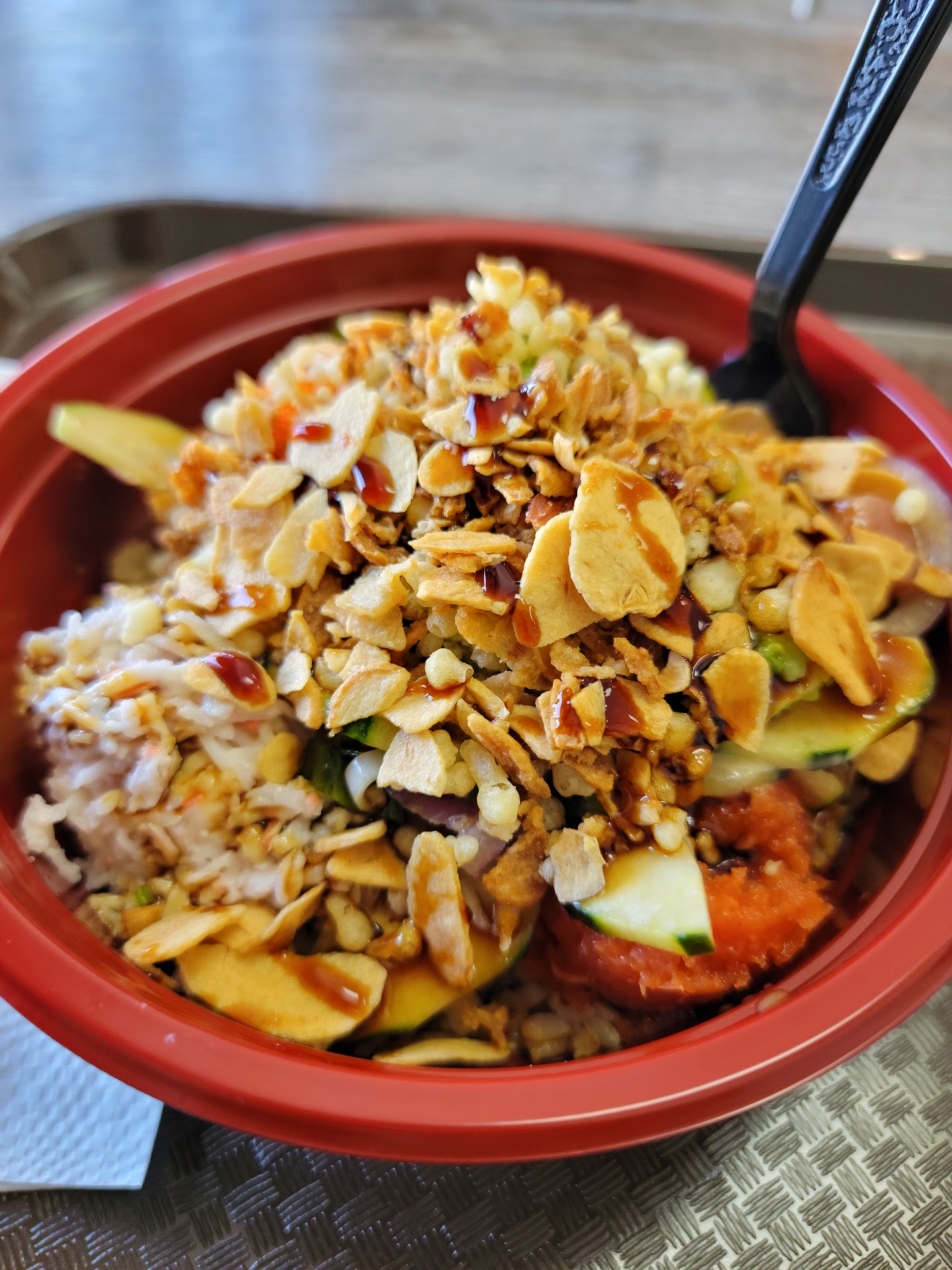 First off the food is amazing, their toppings are always fresh and they make sure to have small batches ready to insure quality and freshness; this is something I find great and they are quick to replace any low stock or missing items. Second their topping selection is the usual you would find at a poke places, but it's their variety of sauces that are superior. They not only have many, but will mix it for you with your protein and this allows it to hit just right, even before you get more sauce at the end of your bowl.