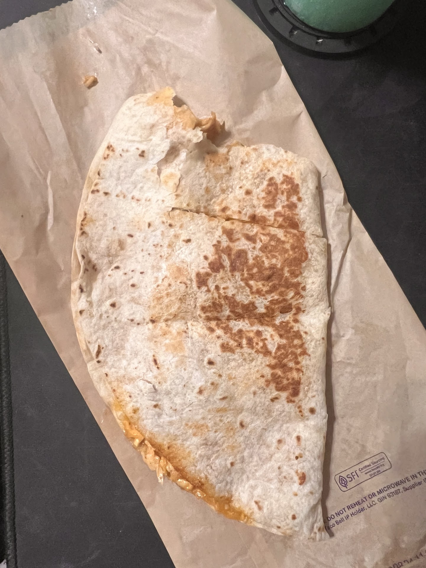 The Quesadilla was pathetic, looked as if it was thrown on floor and stomped on. The employees didn’t bother cutting it. Genuinely could’ve made a better Quesadilla at home and now I’m questioning why I didn’t do that instead. Please save your money and avoid this Taco Bell at all cost. Horrible...