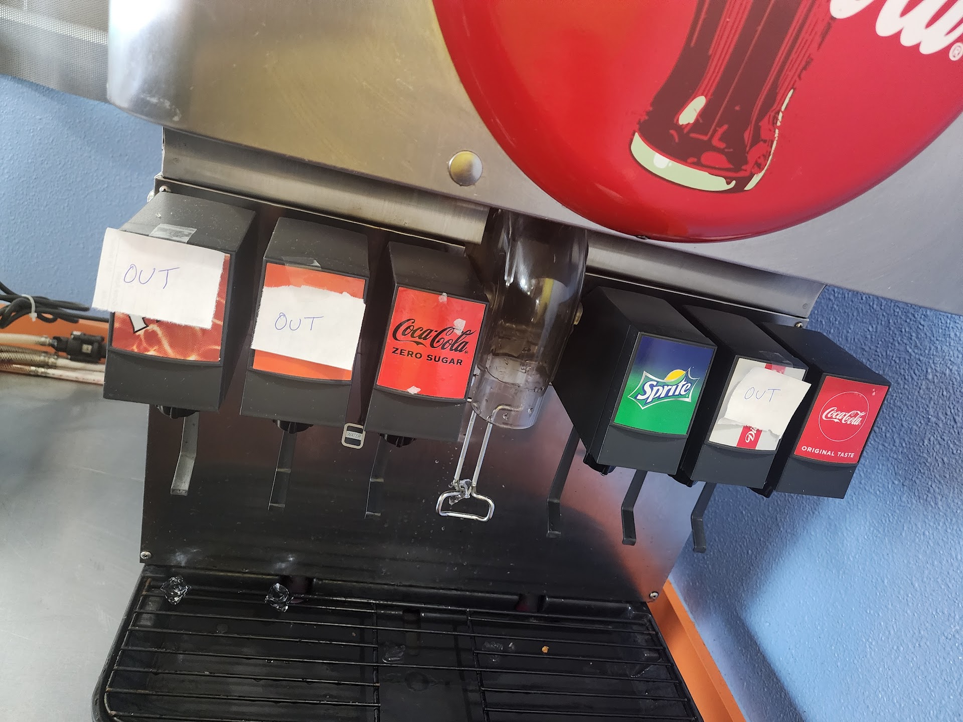 We ordered two adult meals and one kid meal and three drinks. After BUYING our son a drink, she said one came with the meal. So we had a free drink that we didn't even know about until after ordering and half their soda machines were out?