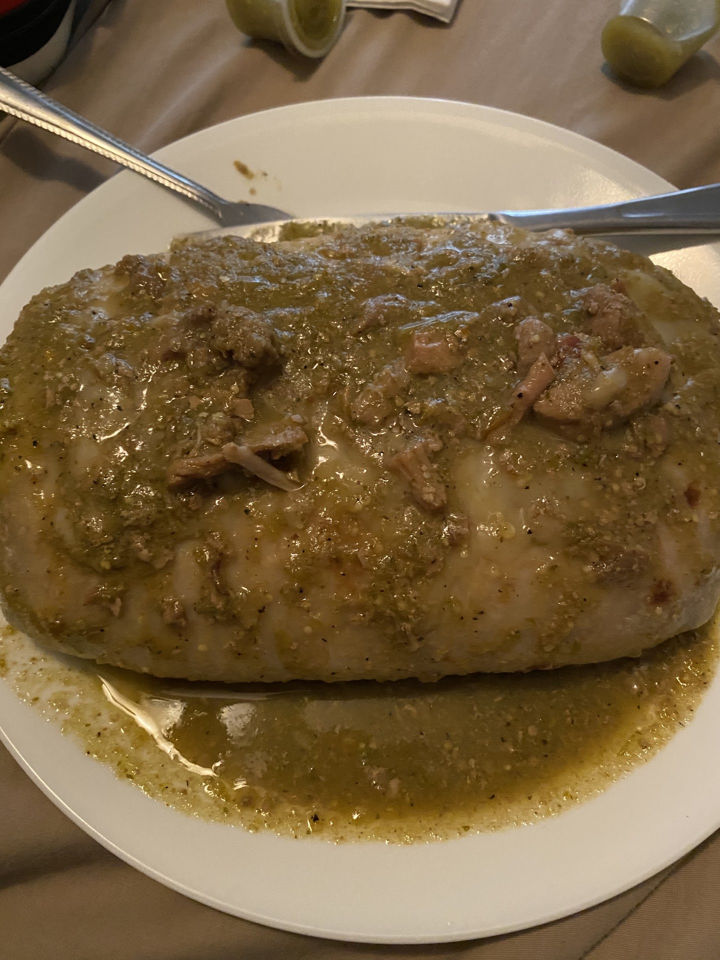 The burrito was a decent size but the flavor was very very plain. There was no significant taste of green chile....the pork was very dry and had no flavor whatsoever, the beans were whole and didn't have any flavor either. The Spanish rice that I got for my kids seemed like it didn't have not even a grain of salt. It was almost like eating white rice with added tomato paste just for the color.