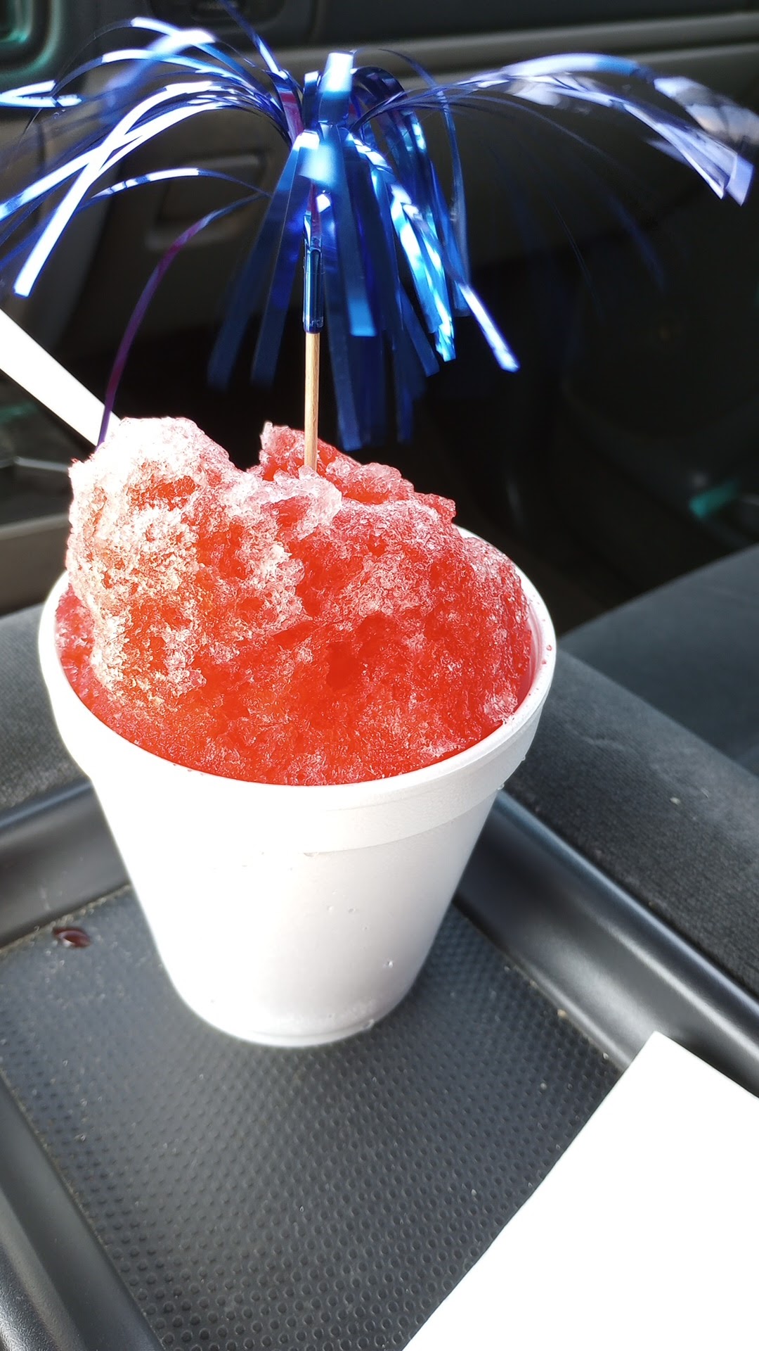 I love this place! ^^ their snow cones!! They make them so big and the ice is so fluffy and the syrup is so bountiful. For a large it's four dollars and some cents and you get a mountain that you may or may not be able to finish. But if you get a chance try one. Summer winter spring or autumn i think it's good. My favorite flavor is cherry, so i normally get a large cherry. Ten out of ten i would always get my snow cones here!! The people working here are all kind generous pure hearted balls of light. Every time i go there, the lady behind the window will grace me with her smile and offer the usual, which i will gladly pay for the privilege of eating such a treasure!! I hope others find this place as delicious and wonderous as i and i can't wait to have my wedding with them catering it!! All the snow cones i can eat on my wedding day?? I better bring...