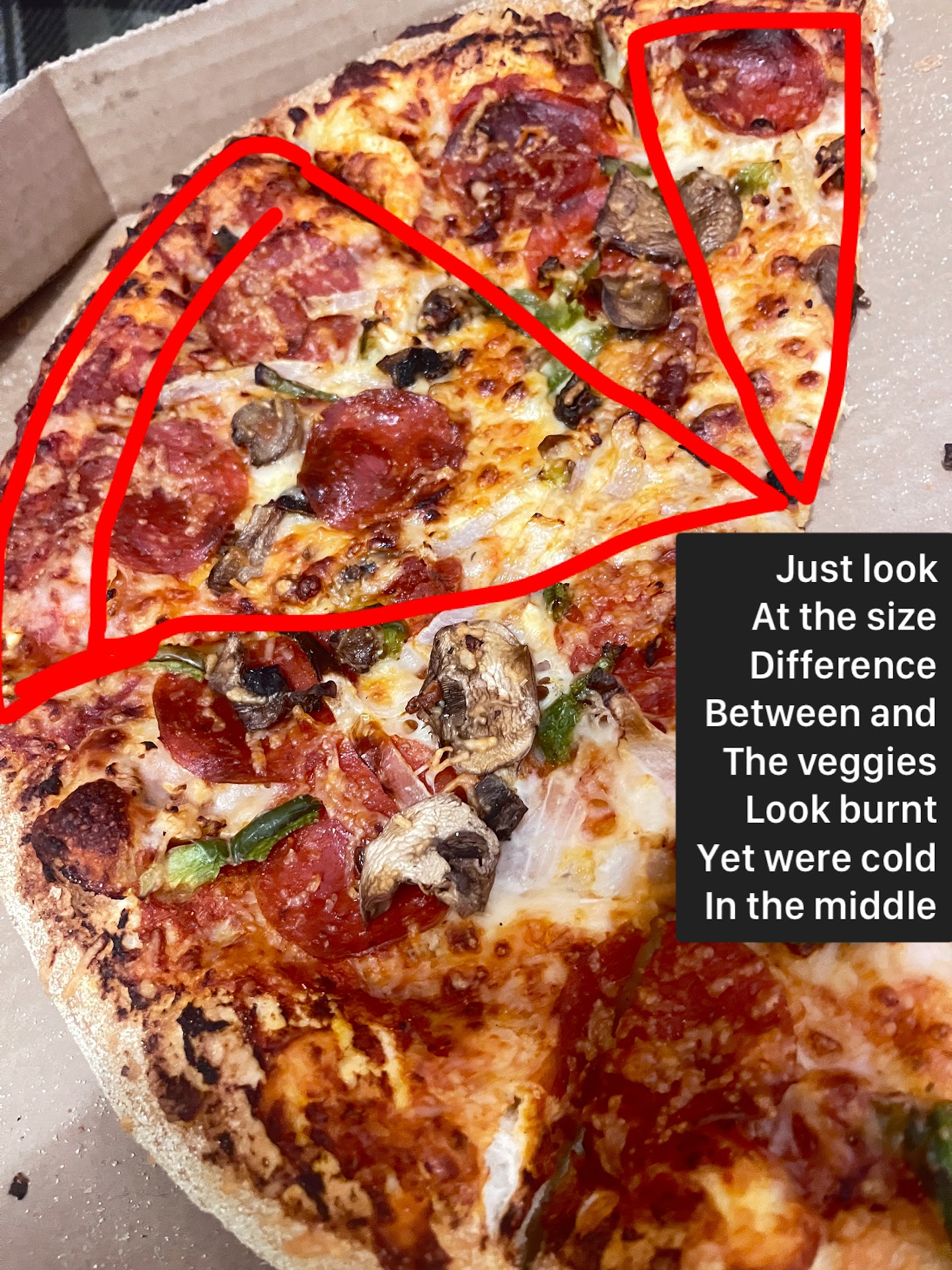 Below is a picture of what I was eventually sent - raw mushrooms sprinkled on a cold pepperoni pizza. This was my punishment from Lincoln for asking if I could speak with the real store manager about the employee who hung...
