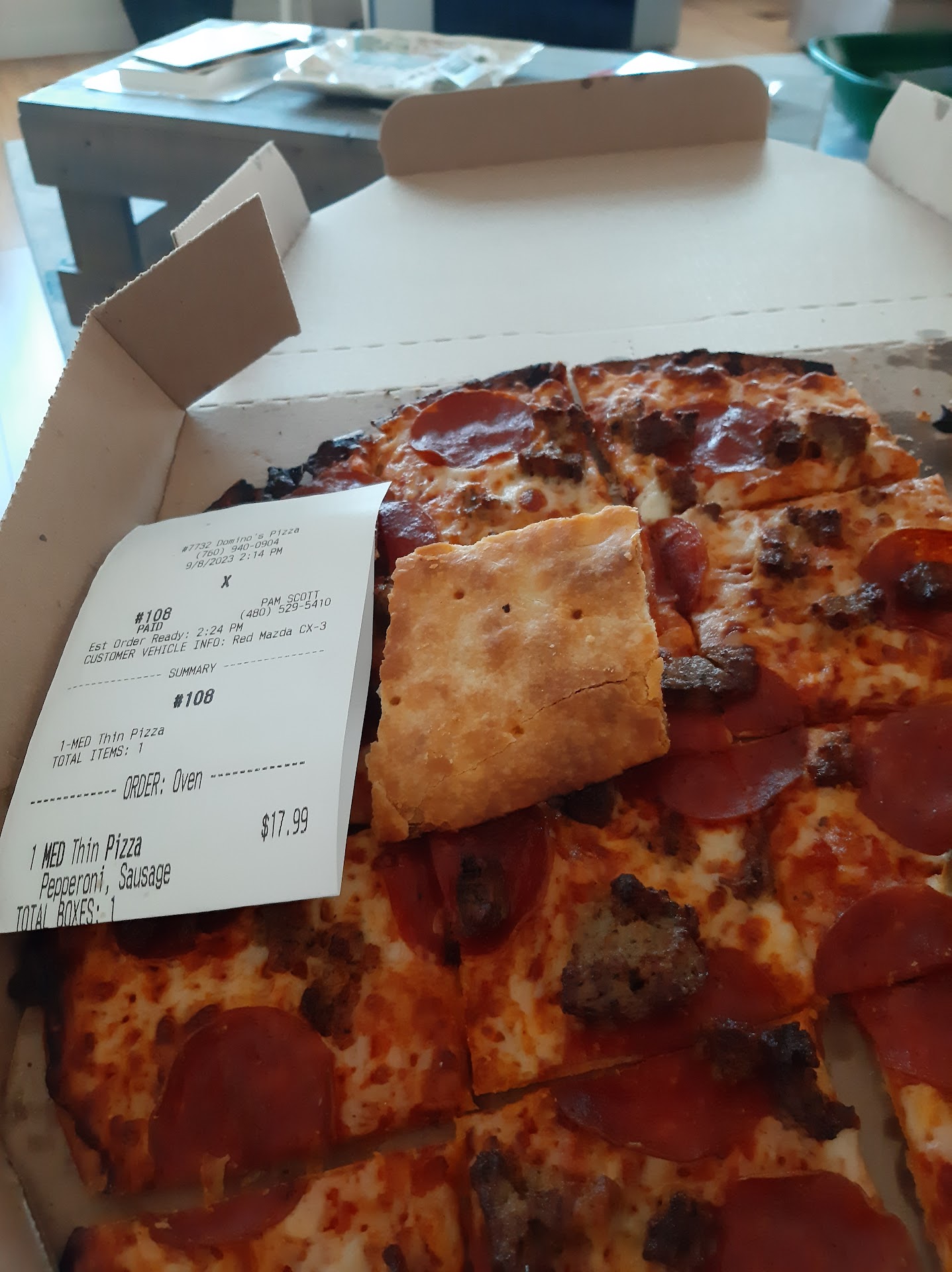 Well mine wasn't. I should've checked the pizzas before I left because one of them had only 2 toppings and was missing one. That's never happened before until now. I didn't check since I was distracted by my car's check engine light coming on when I went to pick up my order. I think maybe one of the 3 girls who was working there also distracted the one who makes the pizzas because it was like a hen party while I was there. They were all just chatting away, perfectly displaying why they don't deserve $20 an hour. One time on a busy Sunday evening I saw an employee, who turned out to be the manager, knock the ringing phone off the hook as she was about to answer it, but then just hung it back up. I feel for the customer on the other end of the line who was probably angrily wondering why they got disconnected.