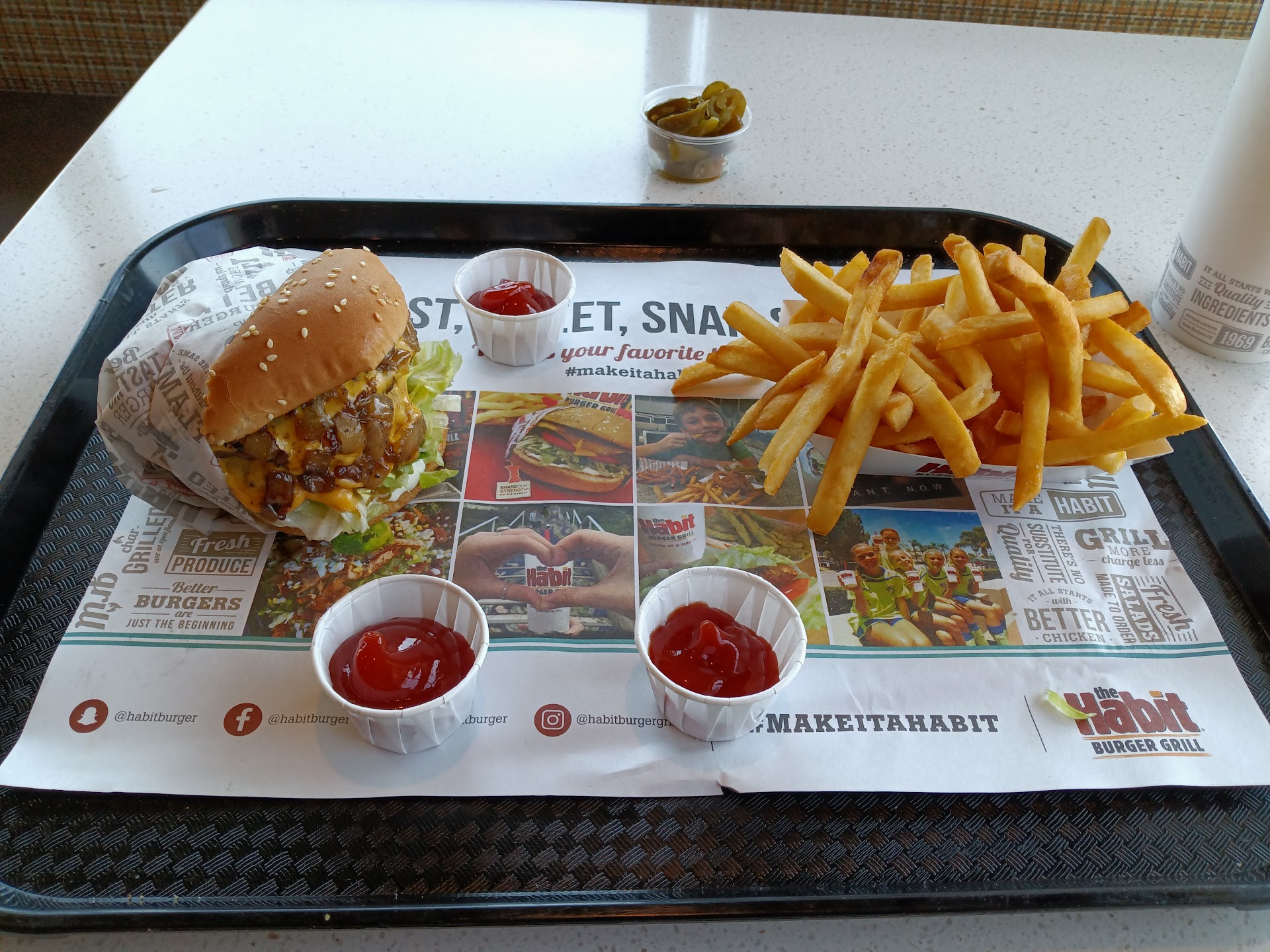 I do not think you can go wrong if you want a hamburger that is decent size and well-prepared. Everybody likes McDonald but if you’re in for a change and want something extra give Habit a try. Like any fast food place to pick up a quick bite but considering you pay almost double what you do at McDonald’s it would be nice if they at least brought your meal to the table. However, they give you a hockey puck buzzer that rings when your order is ready and you must go pick it up. Without mentioning names there are several other fast food chains where they give you a plastic number and bring the meal to you. While some people like drive-through we like to sit and enjoy your meal and having to get the meal while might seem picky we rather it be brought to the table and would pay extra to have that happen. We have a choice we actually go to the non-named fast food places that bring your food to the table instead of the others. I do feel the quality is better than McDonald and they have other options such as a mushroom burger, fish and chicken all served on a bun. While the French fries are not as good as McDonald their onion rings are outstanding. While there’s not a lot of seating inside, they do have patio seating which is pleasant on a nice day and we often take advantage of this. While some people have complained about the price it is a little more expensive but I feel the quality is worth it. We have tried take-home and eat in and I don’t know about you but by the time your sandwich gets home it seems to have lost most of its flavor for that reason, if at all possible, we choose to eat in. We have tried almost everything on the menu and it is usually consistently good the portions are reasonable and if you choose a double burger for a little extra money you get two patties. I cannot give five stars for the food because the last time the lettuce and the tomatoes might have been wet because the bun became so soggy I could no longer eat the sandwich and I brought the remaining burger home for my dog. Also, I cannot give a high star rating for service because there is none. You place your order they buzz you then you pick it up. In the past for any fast food restaurant even though they don’t serve you in most cases we always left a tip however with the new $20 per hour I can no longer justify that. People that take your order are usually very pleasant but sometimes in a rush to get your order log into the computer and the last time, the person taking the order seemed visibly annoyed that my wife could not spit out exactly what she wanted as she was studying the menu. Normally if you in line you have a few minutes to look at the board but this time no one was there. Because my wife didn’t immediately have an answer person looked up at the ceiling and seemed annoyed. It made my wife very uncomfortable. While this is not the only restaurant doing it I find that a fast food restaurant that automatically has a section on top almost requiring you to tip is a bit over the top. If I want to tip I want to tip on my own for good service and not be intimidated with somebody watching to see if I check the proper box for them. Some people feel intimidated because of that I never apply to tip automatically and I wish they would...
