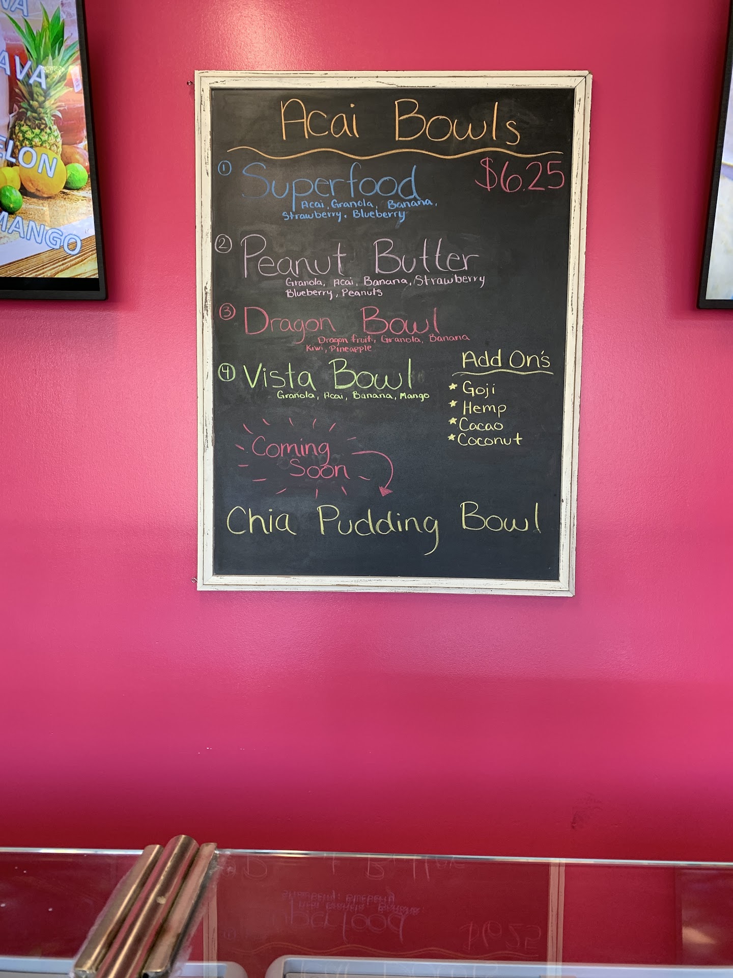 The scooped ice cream flavors can be placed in different size cup containers with different prices per cup. There are also Fruit flavored Beverages to choose from.