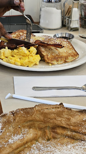 Read moreThis review is mostly about the table next to us and their service or lack there-of. Our very first and very last visit. Three stars for the food, average sized portions considering the price. This was our first visit, we were about to leave soon as we walked inside because there was a customer asking for service and complained of waiting ten minutes to even order their drinks. We must've gotten lucky because within 17 minutes of being seated we were already digging in. Halfway through our breakfast I over heard the couple next to us talking about how it had been a long time since they've seen their server and they have a small baby. It became quite awkward after that especially since we arrived after they did. I have had my coffee refilled twice and by the third visit from our server whom had our check in hand I let her know the family next to us was in need of their server. The server who followed up to our neighbors exclaimed though she was not their server she would check on their food (super awkward at this point) the wife proceeded to ask the server if they could at least get their first coffee refill since it had been 40 minutes after they had placed their order. After the same server returned to refill their coffee she explained to the couple that because they ordered an omelette the wait is an additional 15-20 minutes. The wife begged the server to bring the baby's order (a single fried egg) immediately as he was being fussy. At this point I could no longer enjoy myself here, I felt guilty because we were already eating and we didn't even have a child. Upon leaving our table the couple next to us finally received their breakfast. We paid $40 for two originals one coffee and one 12 Oz orange juice (their large size) we will definitely not be...