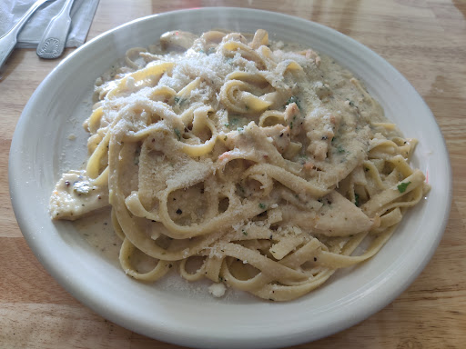 My fiancé and I had fettuccine Alfredo, penne arrabiata, two Cokes, and garlic bread. We spent $38 (plus tip). My fiancé enjoyed the fettuccine - there are carrots in it, which give it an earthy flavor. I had a bite and would add a bit of salt and crushed red pepper, but that’s my taste. I enjoyed the arrabiatta. It’s a spicy pasta, around a medium to hot in a Mexican food scale. The sauce was chunky and they didn’t skimp on the Parmesan, which was powdered. The garlic bread was a great texture, crunchy and buttery and soft all at once.