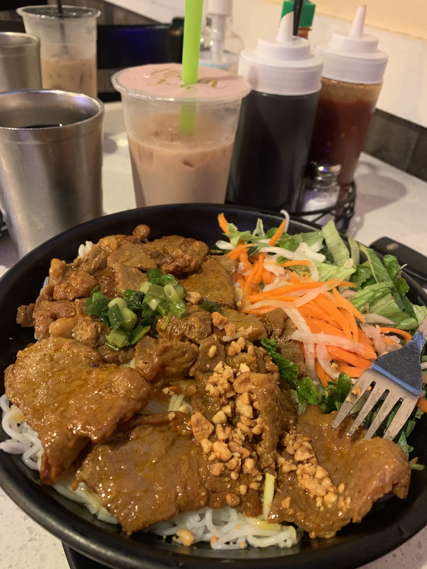 We ordered the six spring rolls, and a bowl of 'house special' Bun - rice vermacelli- with meats and Vietnamese egg rolls on the top. There was plenty of meat, both pork and chicken, the portion was generous. I'm here to tell you that this was perhaps the best bowl of Bun I may ever have had. Flavors were good, the noodles were very slightly warm, not room temp or cold.