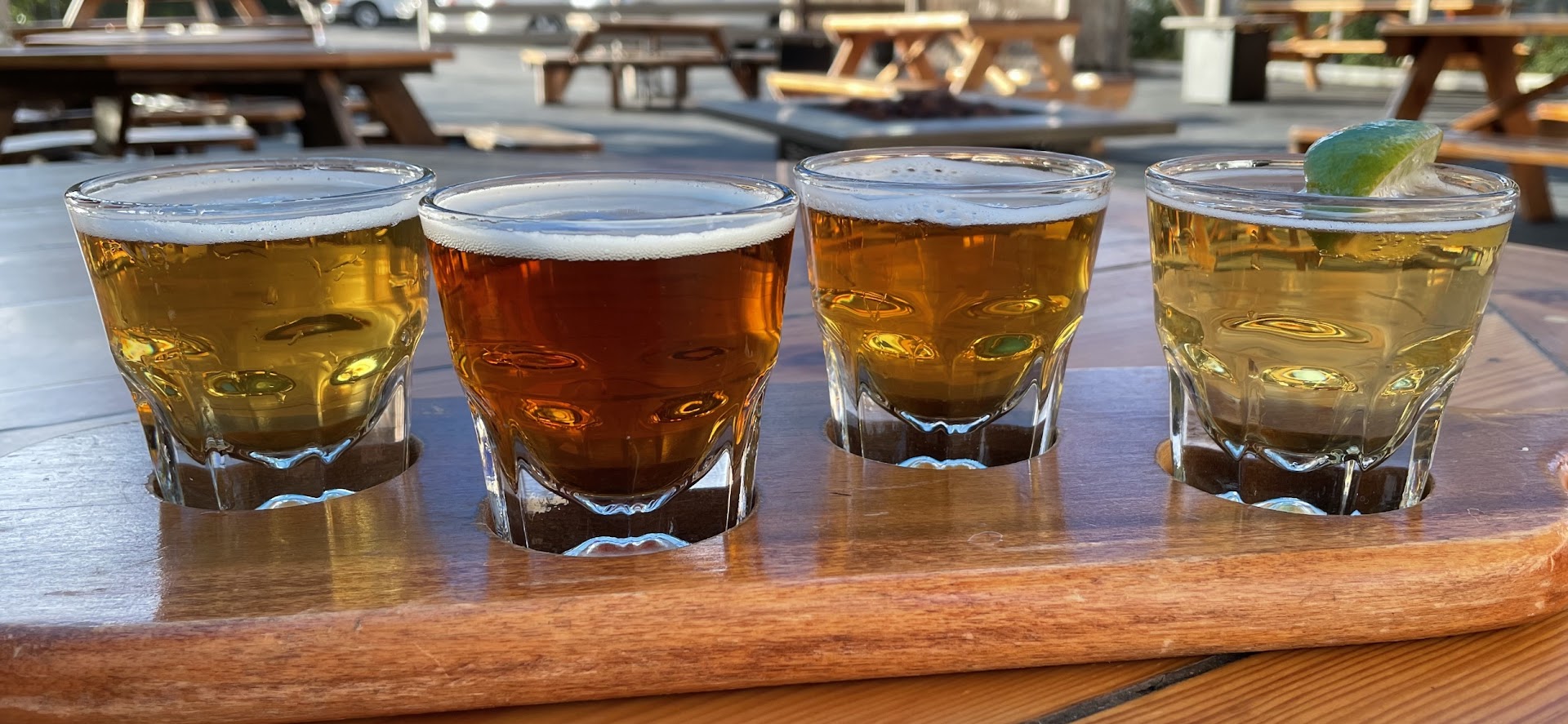 Read moreI happened to be camping nearby and thought I would check out this brewery. I was cordially greeted as I entered the vestibule and was happy to learn dogs are welcomed on their very large patio. The covered patio area has ample seating for small or large groups and has propane heaters for those chilly evenings. There is also an annex seating area adjacent in the parking lot area that is covered with colorful sunscreens and also has propane fire pits.