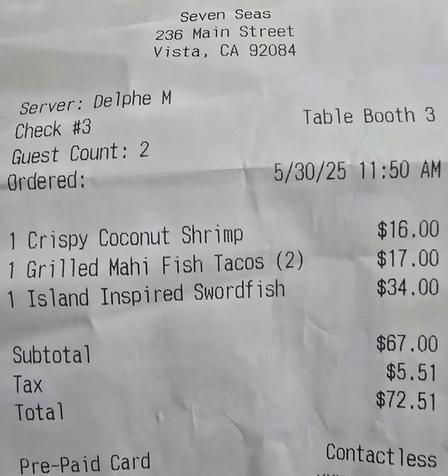 If you like seafood and want to support local businesses, Seven Seas is a must-try. Family owned, mom and dad started the Lighthouse oyster bar in Oside, I heard.