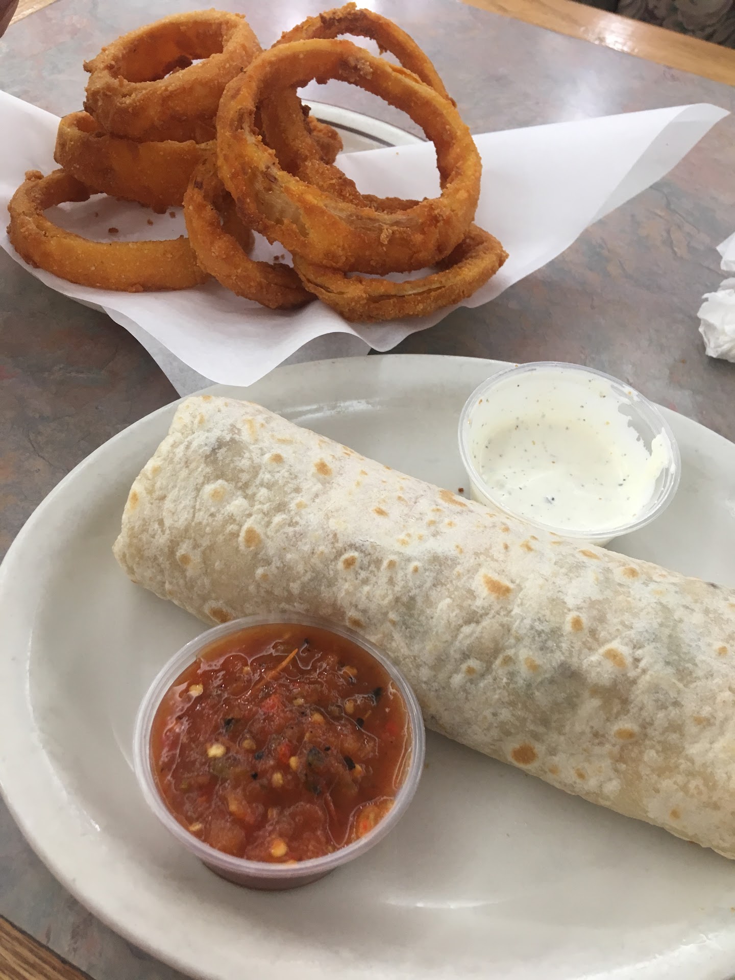 Read moreI work close by, pass by here almost daily. Decided on a burrito and wanted to try the onion rings. Menu is expansive, definitely something for everyone. Good prices for what it is. Onion rings are old fashioned, delicious. Breakfast burrito was definitely worth getting too, salsa it comes with compliments well, fresh. Wasn’t greeted by the girls, and seemed absent for words even upon leaving. Maybe their first job, but honestly should know at least the basics of customer service. On their part it wasn’t terrible, just wasn’t existent whatsoever. Almost walked out. Probably why there’s a Now Hiring sign posted 🤷♂️ On the contrary, the cook was super cool, he came up after I’d stood there at the menu for a minute and asked me if I had questions or decided on my order. Also served as well, definitely a good asset to the team from what I can tell. Would give 4 stars but the food was good, I like local businesses, and overall happy with my first visit. Will come more for sure.