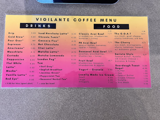 I had a great experience at Vigilante Coffee! Parking was easy, and the shop itself is spacious with a calm, relaxed vibe. There weren’t many people staying for long, which made it a nice, quiet place to enjoy my time. They offer SEVERAL VEGAN options, which is a huge plus in this area where it’s hard to find places with vegan choices. I tried the vegan raspberry pop tart and cinnamon roll, both were delicious, and they even warmed them up for me!
