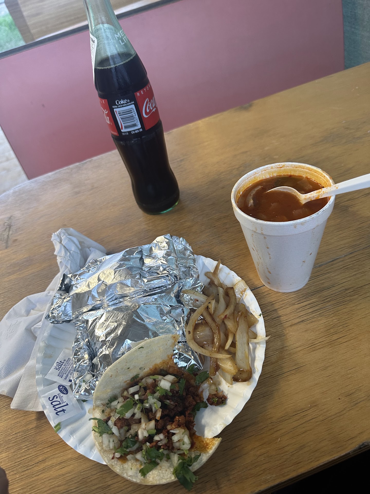 Excellent street tacos! They even came with a tasty soup! They served us quick and it was only about $15 for both my husband and I. We will be back again. There’s a good amount of parking for semis, just watch out for the craters. Oh and giving this place one star for not using credit cards? Wow! Someone must’ve...