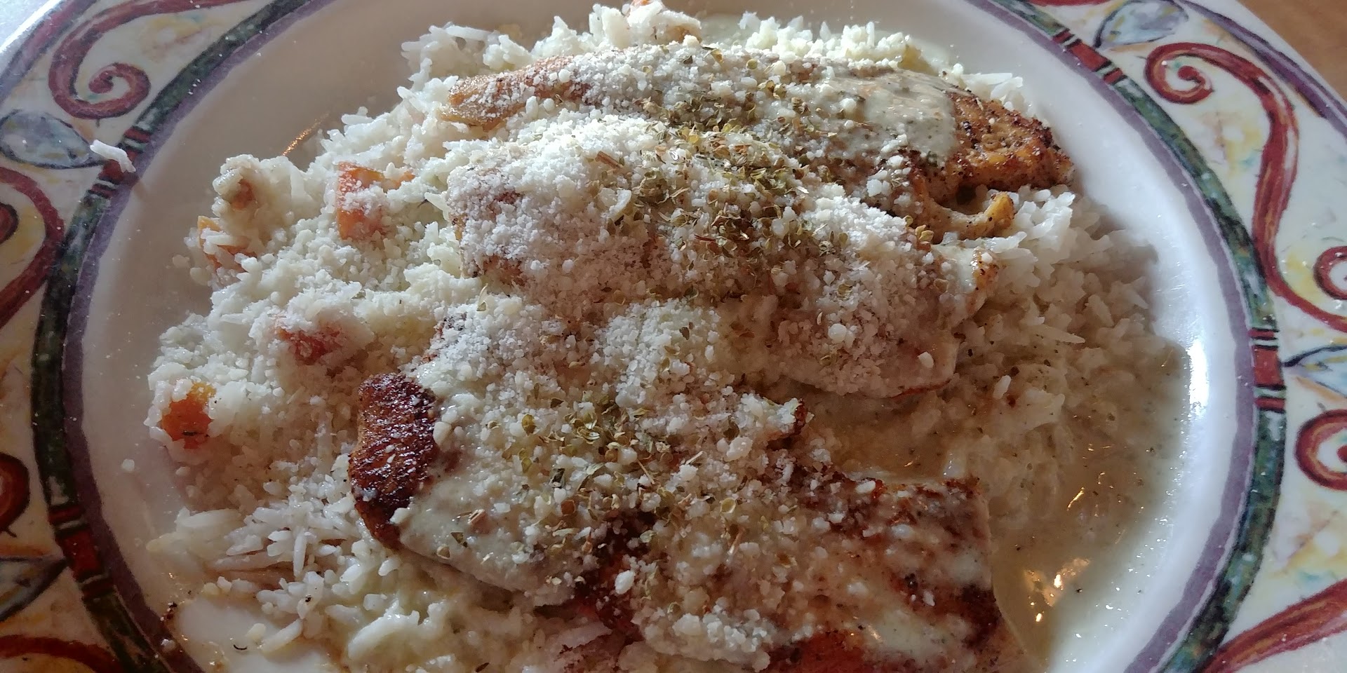 After seeing the high reviews here, I decided to stop in while shopping in Waco, excited to try fresh Mediterranean cuisine. After sampling their food with my fiance, I have to wonder what went wrong for a place with such amazing reviews. Was someone in the back having a bad day or was it something more that was wrong. My answer was to be had soon... The fiance first wrestled his way through a plate of unseasoned and undercooked feta fries and a beef gyro that was so greasy he had to take a drink after every bite. Nevermind the size of the unevenly chopped veggies or the tzatziki that was placed so little on the gyro that it looked as if it were trying to hide from the sheer amount of grease. After winning his fight with his egregiously under seasoned gyro and fries, he turned his attention to my struggle and helped me knock out my plate. Perhaps my plate was where the seasonings from his had fled, for the chicken and rice special I was given had enough Italian seasoning on it to choke a horse. As I ate the super dry chicken that sucked the moisture from my mouth, my taste buds were further assaulted by their heaps of seasoning. The fiance finished my chicken when I tapped out, turning my attention to the rice in hopes of redemption. On the first mouthful, I was saddened, as it was under seasoned and overcooked all at the same time. Again, the fiance helped me knock out the rice, so as not to waste. We could not give up our fail-venture now though and so we picked up their supposed tiramisu and two macaroons; lemon and mango passion ( let me add they didn't even know which macaroon was which as they were unlabeled). Upon trying their ' tiramisu', I wanted to cry in sadness. It was more a peanut butter mousse with caramel in the middle and a tiny bit of expresso flavoring to mask the flavor of the overuse of dye in their mirror glaze they poured on top. The macaroons should not even be called this. They were over food colored to the point that we could taste that over the overbearing flavor of almond extract that overshadowed any flavor of the filling, which on its on had a hard artificial flavor. So, Alpha Omega Grill & Bakery, how would I rate? 0 out of 5 if I could. But hey at least the name is right, I came in and began thinking that I was going to get Authentic and amazing food. I ended with the knowledge that I got none of that. Alpha...