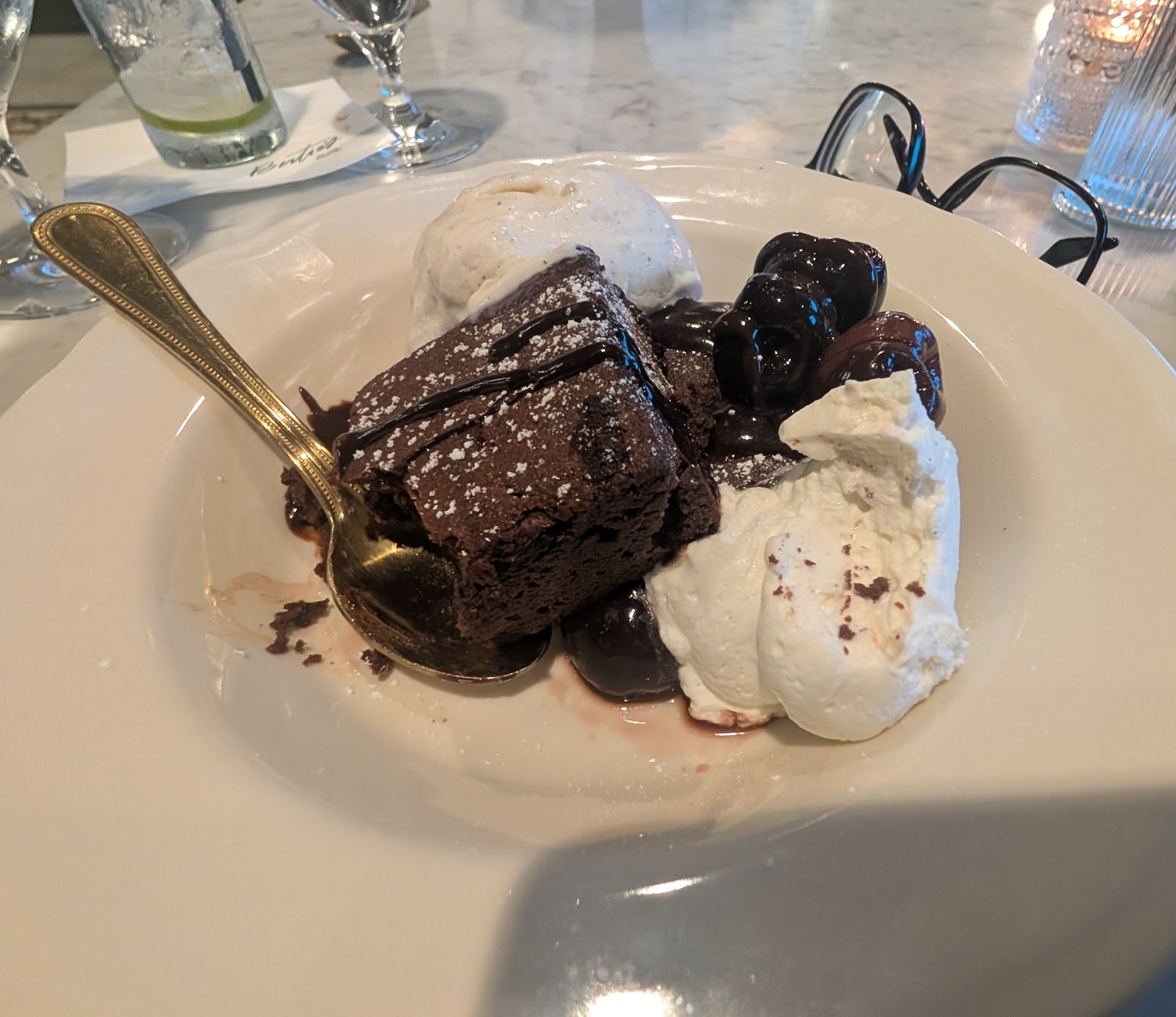 After dinner, we moved down to the bar to enjoy some drinks and eat some dessert (to hopefully get our mind off the wasted opportunity which was Bertie’s). Besides the confusion on where to sit, I enjoyed a wonderful drink made by a not so wonderful bartender who didn’t hide her face of “I don’t want to be here” . This attitude continued and was the first impression we were introduced to as we grabbed a seat at a table that remained dirty for 10 minutes, and after waiting for an additional 5 we just settled for the opportunity to sit down. After not being acknowledged for a longer than wanted period of time, we finally ordered the crème brûlée cheesecake. The first time trying this dish and will definitely be my last. If I wanted to pay $9 for a spin on something that tasted like Chobani Greek yogurt I would’ve gone to HEB. The custard tasted spoiled and the person who flamed the sugar on top was definitely having fun with his flamethrower as we tried to consume inedible char. I’ve never left a dessert on the table and am one to look in disgust at those who would waste a dessert. That being said we took three bites and that was enough for me to accept my hypocrisy.