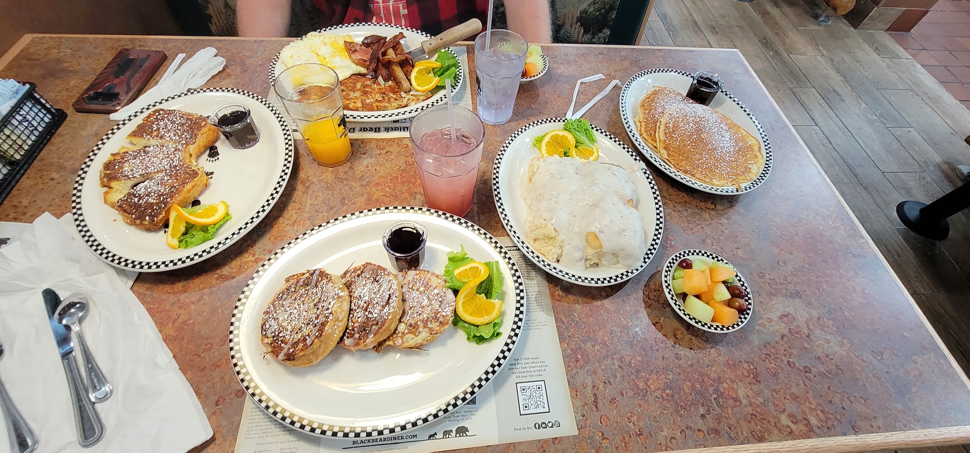 So I eat my pancakes in the restaurant in a to-go container. And before we leave the server stops by one more time and I'm able to get my cold coffee to go. But she said something weird, "sorry but we were out of it earlier". So she knew I wanted it, didn't bring it- didn't address it and probably didn't want to bring it since it's not actually bottomless.