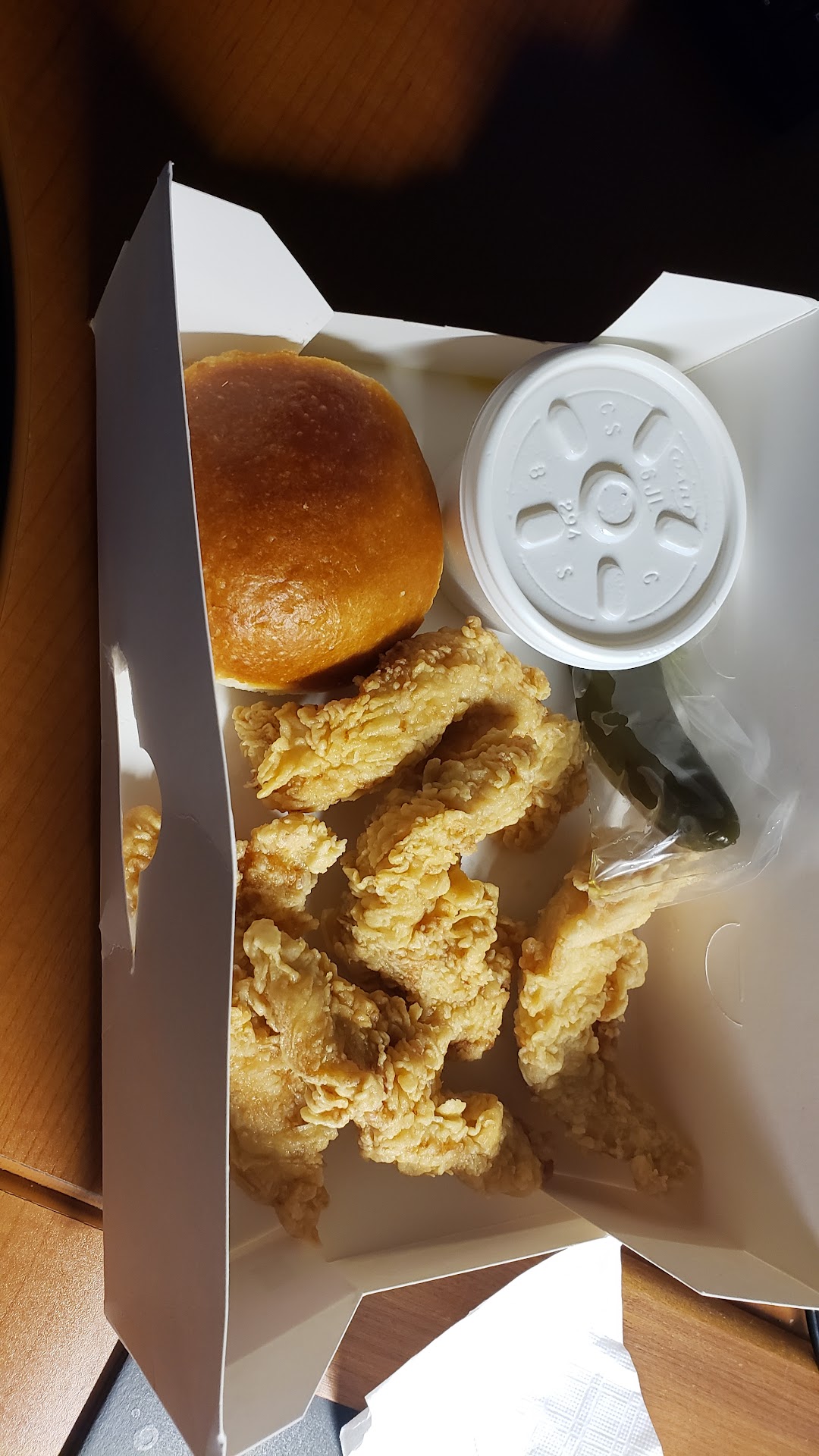 Now letâs talk about the foodâbecause wow. I ordered the 4-piece tender meal with a side of fried okra and a sweet tea, and every single bite was a reminder of why Southern comfort food is in a league of its own. The chicken tenders were perfectly cookedâcrispy on the outside, juicy and tender on the inside. You could taste the seasoning in every bite, and it wasnât overpowering, just flavorful enough to make you want another piece before you even finish the one in your hand.