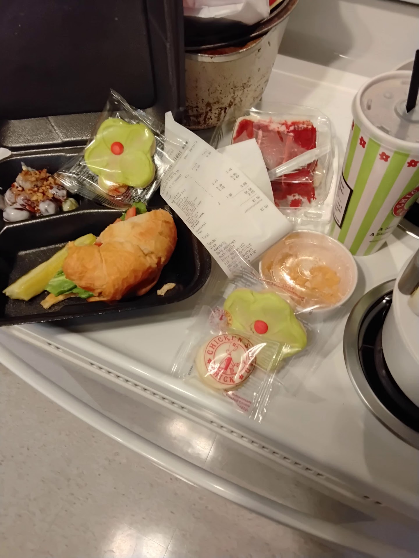 You have several choices of bread for your chicken salad sandwich, or you can get a scoop of it for a salad. Truly eating the chicken salad with the crackers that they provide is a taste bud treat, as well. The cake and cookies? Yes, please!!!