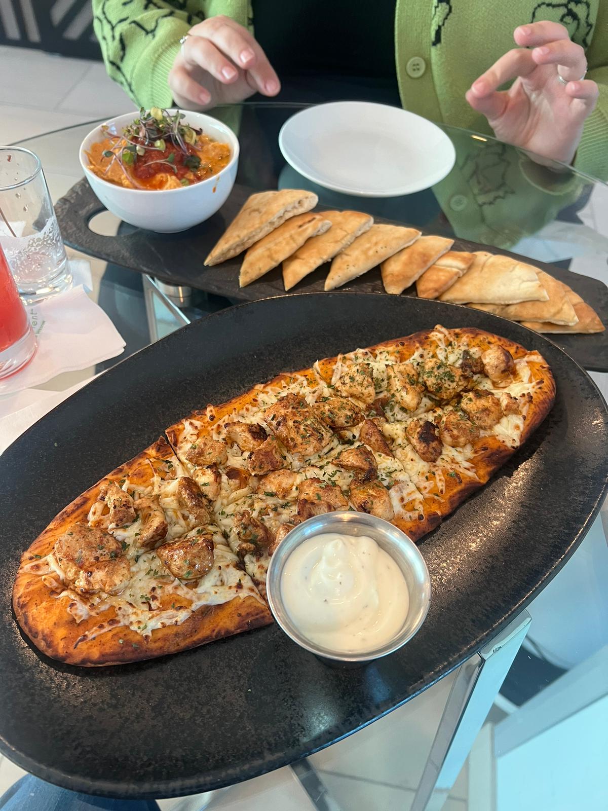 Read moreI hate that I have to give a bad review because the waitress and the manager tried to remedy the shortcomings of the kitchen but the food here is a bust. I donât know how you can go from 5 star to low star reviews in a matter of weeks but thatâs where itâs at. The eggplant wasnât even cooked. It was inedible. The flatbread was ok except who in the Mediterranean slathers flatbread with Ranch dressing? đ¤ˇđźââď¸ The kabobs our friend ate portions of were tough with pretty lousy tzatziki sauce. Cucumber anyone? Itâs not just glorified sour cream, chef! Our kabobs replacement for the inedible eggplant were overcooked and skimpy. Our salad was good but we had to ask for the dressing and blueberries promised on the menu to complete it. The most irksome of the entire 2 hour ordeal was how long food sat in the queue to complete our âmealsâ rendering them all cold or lukewarm. At $20+ a plate, this is not acceptable. They need a competent chef and kitchen staff. The 2 day old waitress was sweet, apologetic, and awesome. Wasnât her fault. The bartender/manager comped about half our orders but still at $100 with tip, it left a bad taste in our mouth. Hard pass on food here. The drinks were creative and good. The atmosphere was fair but how can we pay attention to that when the food...