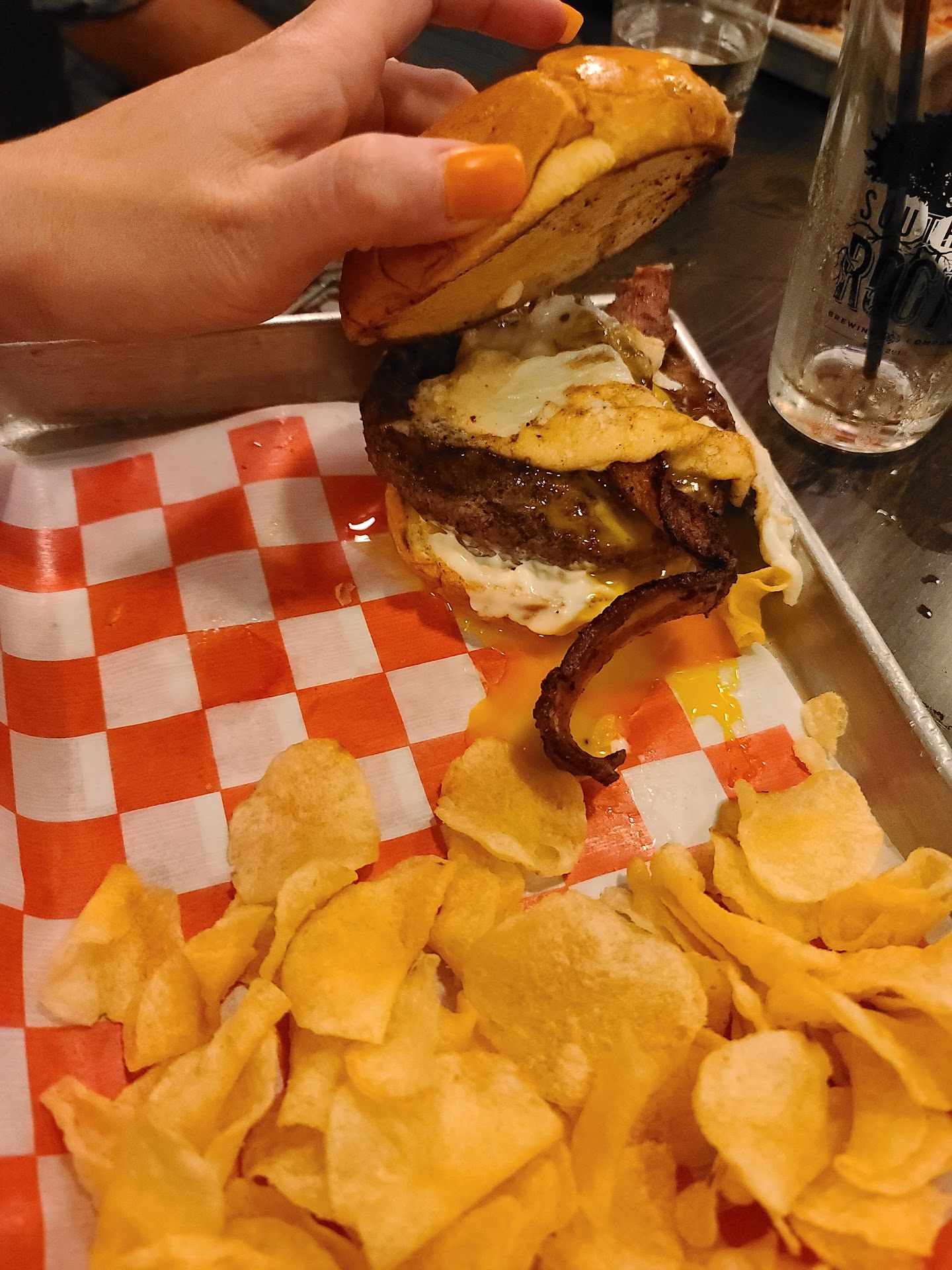 breakfast burgers were beyond inconsistent. One was almost dried out it was cooked so much, one was rare and one was medium rare. The burgers were cold and underseasoned, and two of the eggs were still jiggly and clear and not cooked per stated on the menu. None had hollandaise sauce, one burger legitimately had a less than 2 inch strip of bacon on it,another had one just flung on and almost not even tucked into the bun as a whole.the chips that came with it were just straight from a bag and nothing to write home about. Potato casserole was horrifying, and looked like store bought "simply potatoes" just boiled in milk.