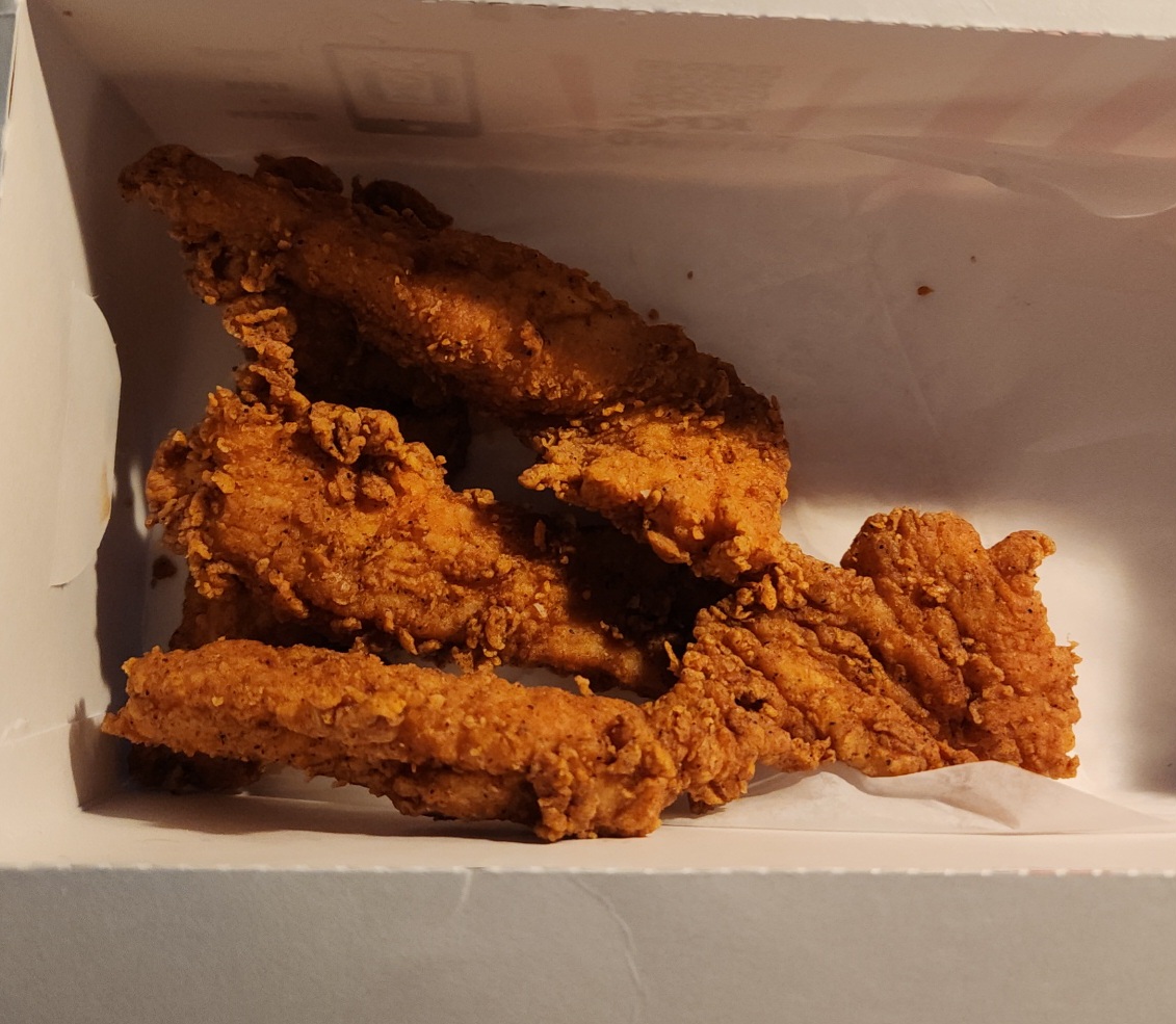Read moreI've tried to get food from this place 5 times now over the past year. First two times I was told they were out of chicken. I marked it up to the pandemic supply chain issues. Third time their computers weren't working. Fourth time they have chicken, but only drumsticks. Today was the fifth and final time. I pull into the drive through for lunch around 11:20 and ask if they have chicken. Yes they do! Great, I'll take some tenders. One slight problem, they haven't started the fryers so if I want to wait it'll just be an hour.... I was being asked to wait an hour in drive through because they couldn't cook anything.