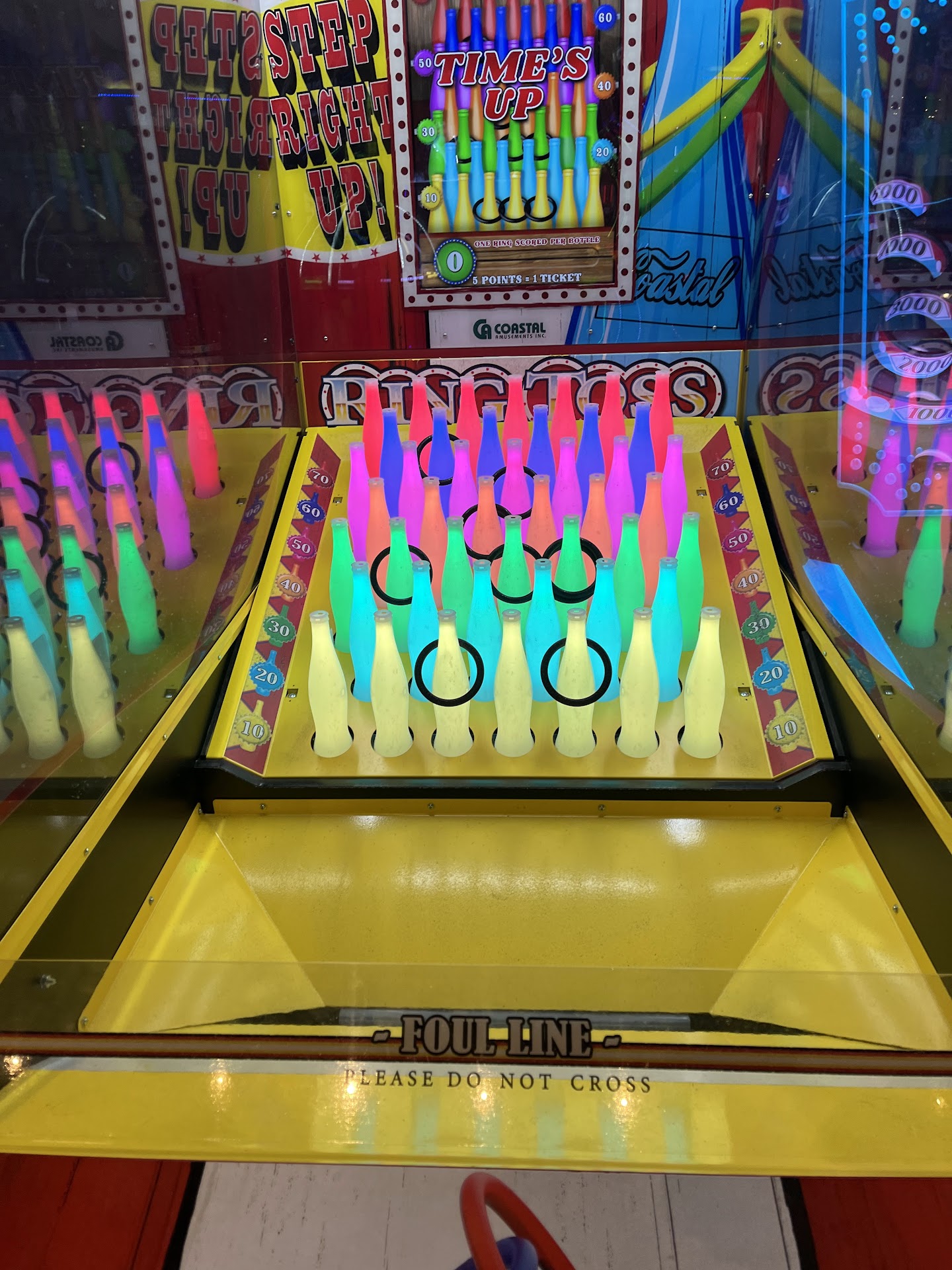 First impressions: When you walk in the door All of the games are right in front of you. The room is charged from all of the electronics so it gives the impression that this place is going to be fun. To the left is the prize store, to the right is the bar and restaurant. Directly in front of you are the machines where you buy the credits or your card for the games. As you move past those you're into the game room itself. Slightly to the left is the skyline. If you move a little further back you come to the bowling alley directly in front of you, with bathrooms to the left, and a concession stand to the right. All in all the place is laid out very well. Very large bathrooms for men and women, with a bonus handicapped private bathroom with a baby changing table. It's a good place to step into if you need to calm the baby change the baby or just have a little peace and quiet, which comes to my second impression...