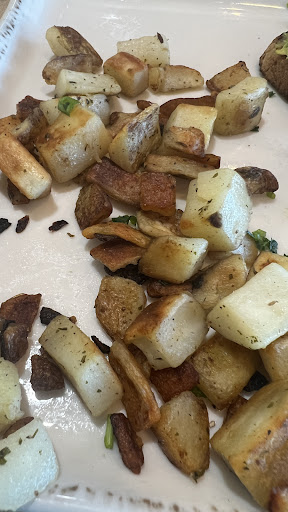 The potatoes, though? A miss. The cuts were all over the placeâsome thick and soft, others thin and burned, and more than a few half-raw. They lacked seasoning, tasted starchy, and had that unfortunate undercooked interior with an overcooked shell. The uneven chop made them cook unevenly, and it showed. I left most of them on the plate.