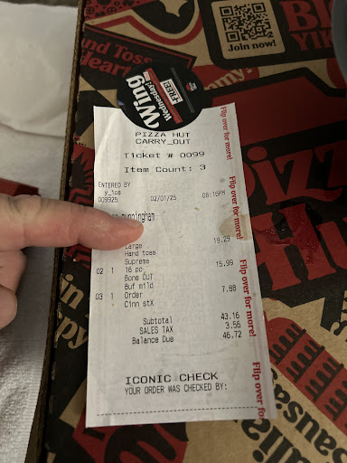 Read moreCan't speak for the food aside from the hot soft drink. But having broke down in their parking lot I asked for a jump and it was no problem right after they finished loading the large pizza order in the back of someone's truck. However the employee never showed. Half hour later checked back and was told they do have jumper cables but they were busy. I said I understood and went to wait with my hot soda. Three hours later it's now dark, I have a two hour drive back to Dallas and they won't release a simple inside employee three minutes for a jump to a person in need. Either management at this location doesn't understand any person in their presence in need is a potential future customer, simply was raised to treat their fellow people's like lowest class, or this is just the norm here in Waco and I'm in the wrong. Surely I could have purchased a pizza, would that have made me worthy, hmmm. I wonder. It's pizza hut, like all the rest.. this locations exception is the phenomenal employee dedication to the cause. I highly recommend this location.. I give it one star only because they lost one for every hour I waited in the heat for it to get dark out to stole just before closing none of the employees had jumper cables. Must be hard hearing in my...