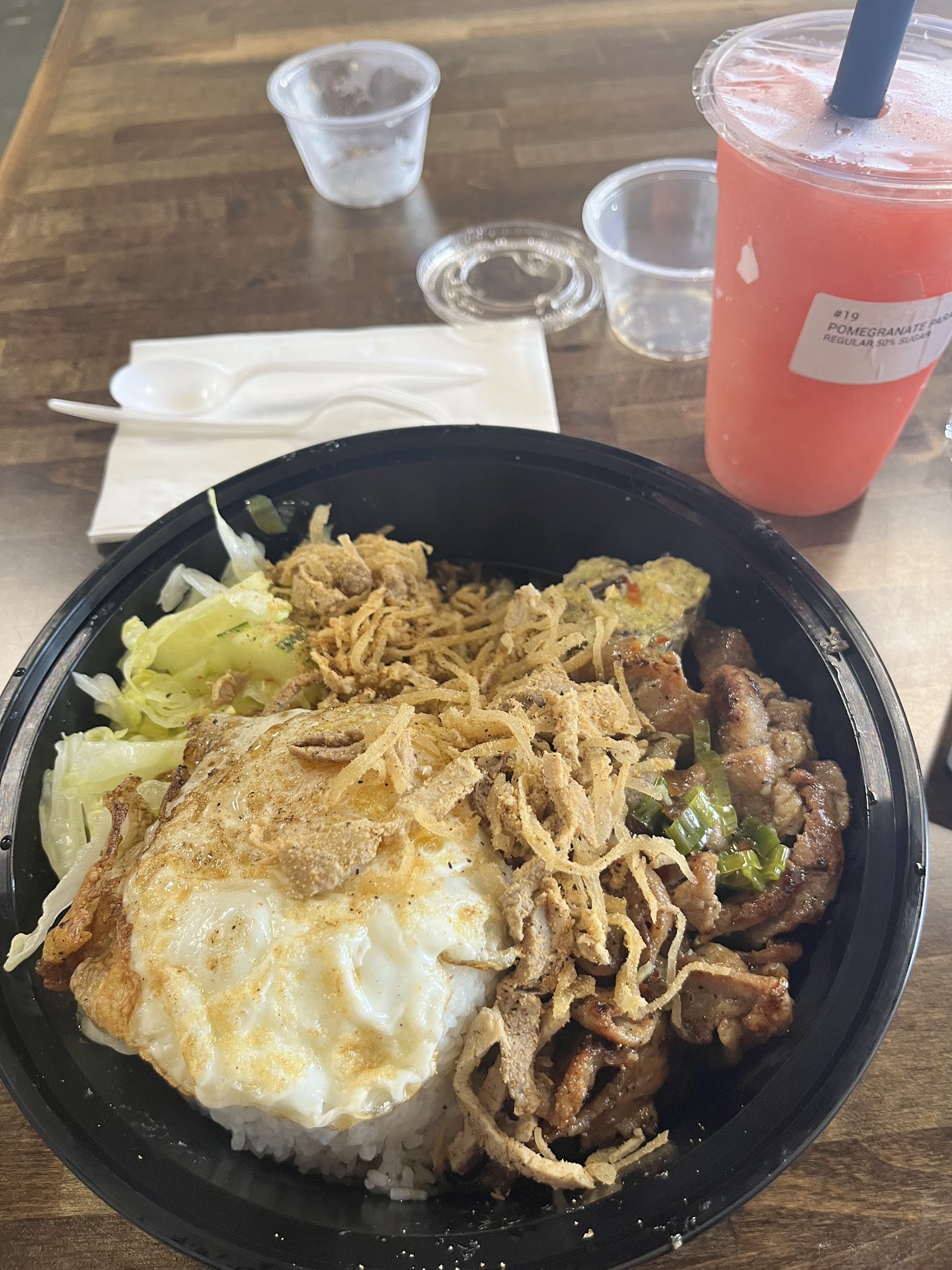 The food we ordered was the grilled pork bowl and the egg rolls. I liked that the egg rolls were shareable and the owners said they make everything from scratch. The grilled pork was filling, flavorful and the veggies were so fresh.