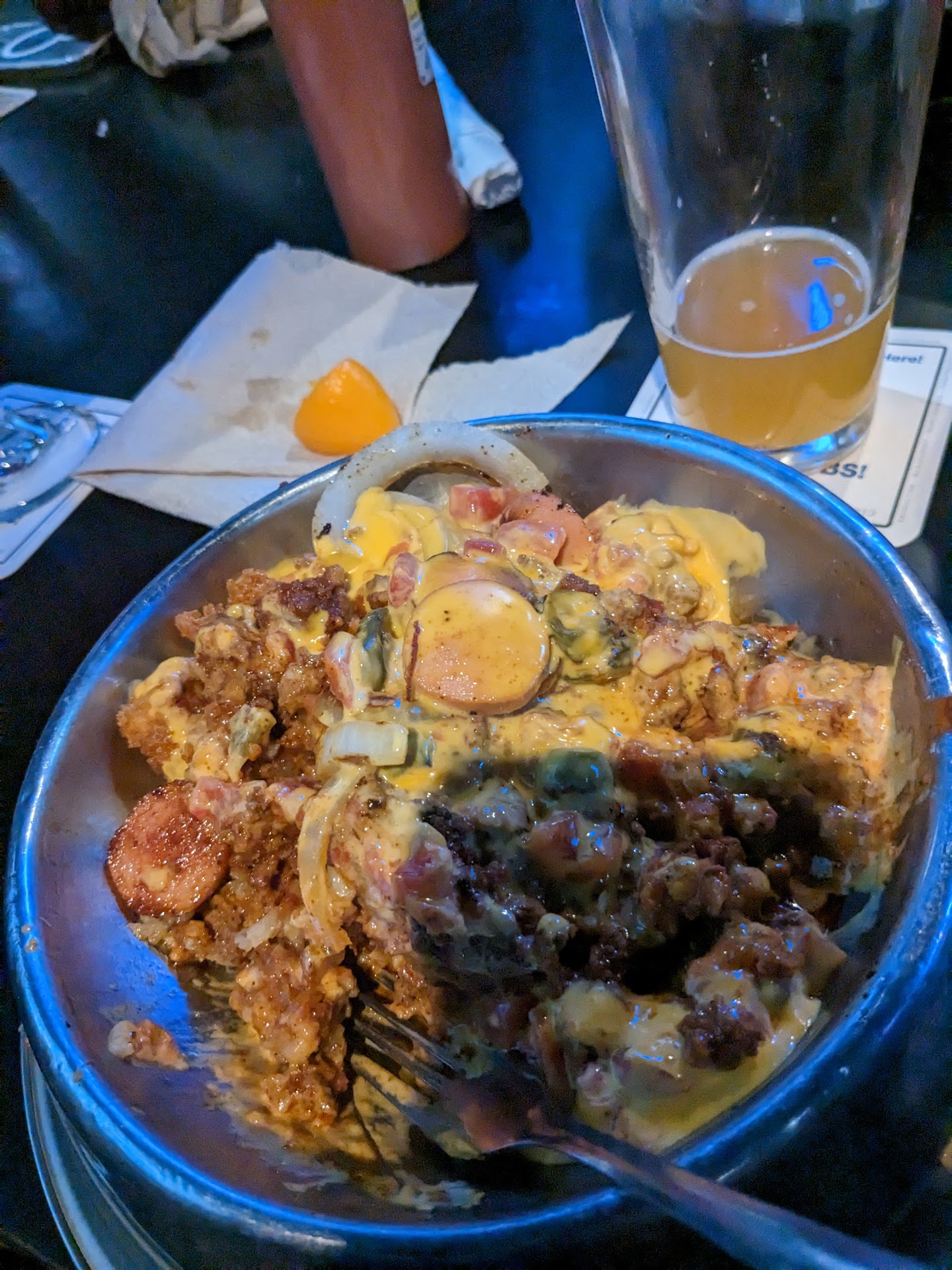 Were to start? I've eaten at Salty Dog (SD) multiple times with my family and I've always enjoyed it. In fact, I've even left a positive review on here about them. That all changed Sunday. My husband, my child, and I paid a visit to Salty Dog this past weekend. We walked in at around 11am. We placed our drink order around 11:05 and quickly received our drinks. This seemed to be pretty standard for the place, so no surprises there. Things soon started to foreshadow a change. It took almost twenty minutes for the waiter to come back and take our food order. SD had introduced a brunch menu. While I was enthusiastic about trying something new, I was a bit disappointed that I couldn't get my old favorite. Change is good though, right?By 11:30, my husband received his burger, the brunch burger. I was told that my order (the chicken and waffle) would be out shortly. To appease my toddler (who I would be sharing my meal with as there was no children's menu or offer of any child friendly sides), my husband and I quickly went through his fries, passing them to our kid. All three of us enjoyed them. At 11:55, my food still hadn't arrived. I was about to flag down our waiter, who had focused his attention on the larger table off to the left of the bar for the bulk of our visit and who had not checked on us in 25 minutes, to cancel my order. I had finally run out of patience. Seriously, how long does it take to fry up a couple of chicken tenders and a waffle? At 11:58, my plate finally arrived...28 minutes AFTER my husband's!!! The waffle looked burned and the chicken tenders were beyond dry. The food was a disaster. Our waiter disappeared again with no offer of refills on our water or to ask if we wanted another drink. My husband's burger was just as lacking in flavor. Usually, the burgers there are amazing, but this one was bland and almost boring. The icing on the cake was when we finally received our ticked at 12:15 or so...after our waiter again graced us with his presence for the first time since dropping off my plate. I asked for a to-go box and the check. On the check, as if to add insult to injury, was a new charge that I had never seen at SD before: a NON-CASH ADJUSTMENT FEE of almost $3. That was added to the $28 bill which brought our total to $31. We were flabbergasted! My husband went to see if the fee could be removed, but our waiter acted as if we were speaking a foreign language. Do yourself a favor and do NOT go here. I know it will not be on my go-to list of places to eat in Waco again. Good luck, Salty Dog. I hope the service fee was worth it. You've lost a paying customer because of the fee you tacked on AND the horrendous...