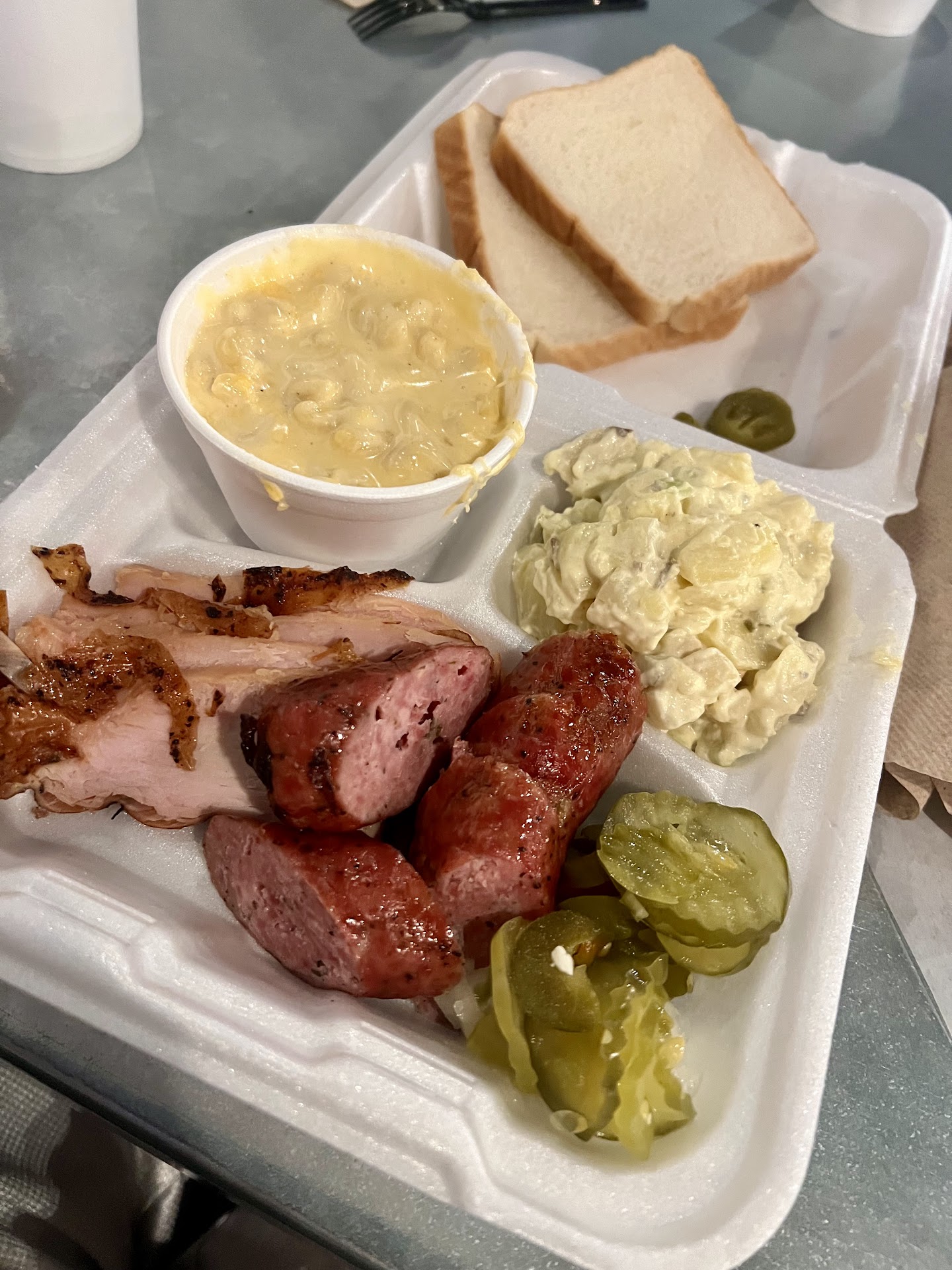 Read moreGot there at 7:00 PM (close @ 8:00PM) all that was left was brisket and sausage. Which was no problem due to the fact that I wanted the brisket. I got the large gut buster dish (pricey). The food is served in styrofoam even if you eat there. What I didn’t know was that they would pile everything on top of each other. Corn chips, beans, onions, pickles, brisket. Just one large pile of food. I used the plastic fork to try to find the brisket under the mush of beans only to be disappointed. “Enter where’s the beef lady”. Only a few cube cut pieces of brisket made it to my styrofoam container. I asked for the long cut, so there was a disconnect from the time that I ordered to the preparing the food. Which was like 5 seconds. Ok, so I will say that EVERYONE working there was nice and polite. But the chow they serve was not quite what I think a BBQ meal should be. See picture, it’s just one big pile of, well, food. Hard to taste the flavors of the BBQ brisket when it’s mashed in with other food that should be just that, sides. No BBQ sauce bottles at the tables. No tangy or sweet or no hot n spicy. The bread was just plain ol grocery store bread (2 pieces) no thick cut Texas toast I guess. I kinda feel I got rooked for nearly 20 bucks for a BBQ that I thought was going to be awesome. We only heard about this place from the local folk here in Waco. Maybe this how they prefer their BBQ? I guess each food joint has their unique style of food and atmosphere and this place is no different, heck, the place has been around for long time. But it’s not my...
