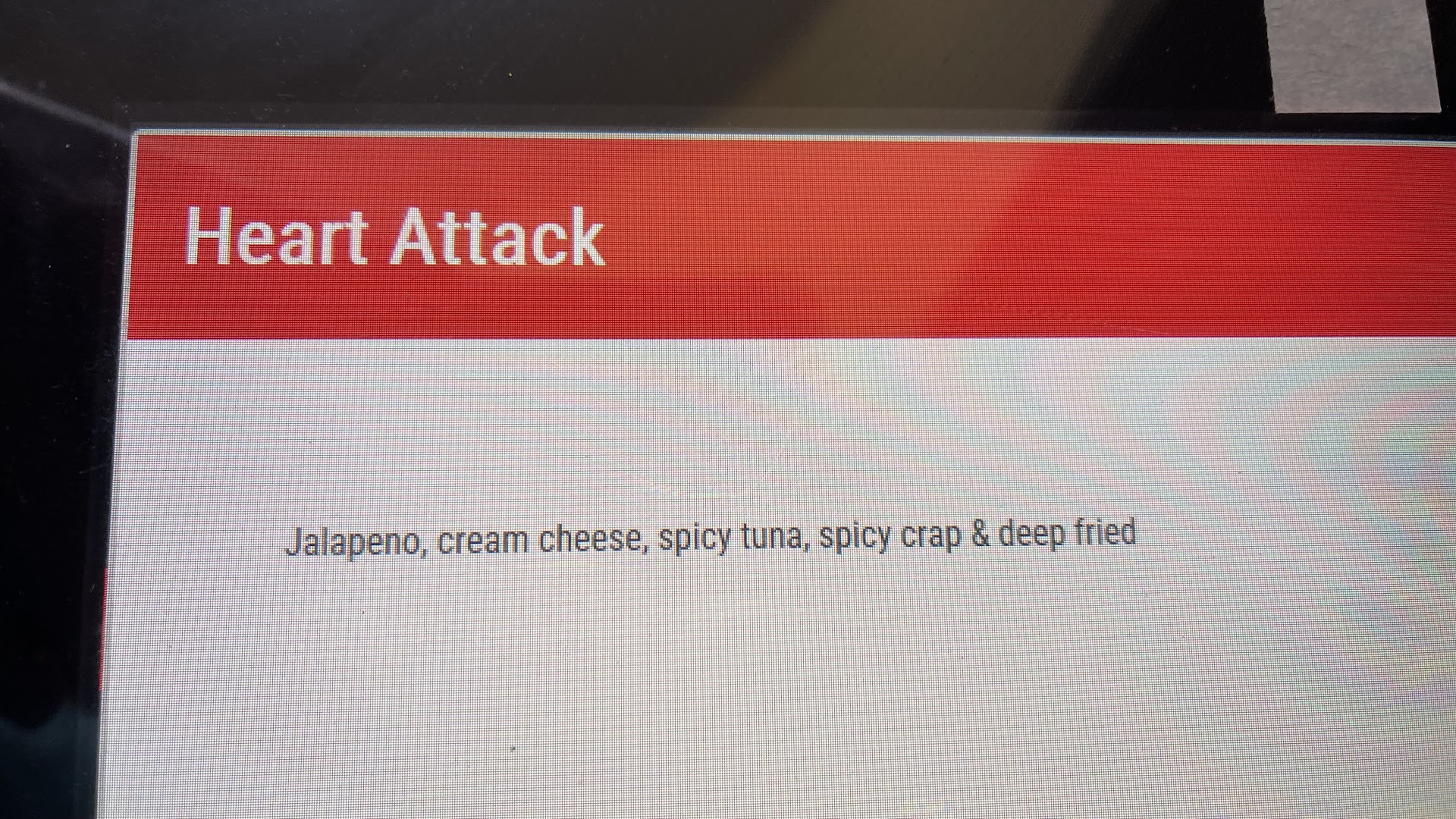 Once we got home and started eating, no one seemed happy with the taste of the dishes. The honeymoon roll had smoked salmon in it. This roll wasn't listed on the text menu, only the picture menu with no list of ingredients. My step-son hates smoked salmon, so I switched off with him. Everyone tried the Galbi and agreed it was waaayyy too chewy. It doesn't seem like they marinate these long enough.