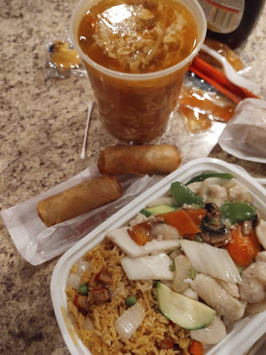 I had the moo goo gai pan hot and sour soup spring rolls and an egg roll the moo goo gai pan came with the egg roll and some pork fried rice. Out of everything there the pork fried rice was the best. The hot and sour soup was made with mushrooms instead of using the tree fungus as traditional used. It had a burn to it but probably could have benefited from maybe having pepper flakes or a stronger pepper. The moo goo gai pan had zucchini in it which I've never had before it wasn't bad. Everything could have used a little bit more flavoring I think they were low on salt and MSG would have been a plus. Also I think the movie guy pen needed a little bit more garlic as did the soup. The spring rolls were deep fried and we're okay she talking mushroom flavor was strong in it. The egg roll was very good. I guess my end impression is there needs to be more salt or soy sauce used in their flavoring a little more garlic and more traditional ingredients like the...