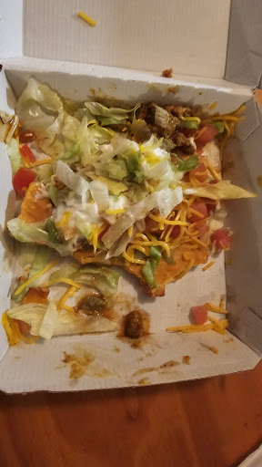 Read moreMy husband and I visit every once and a while when we're in the mood for something quick that isn't a burger. 9 times out of 10 you can't go inside because the doors are locked. Their drive thru line gets ridiculously long and they take forever to make your food. The last time we visited (in December) we ordered online to pick up. There was a sign that said online orders could pick up inside. Go to do so, door is locked. Have to sit in the drive through line for 20 minutes just to get to the ordering station to tell them we have an online order. Takes another 15 minutes to get to the window for our food. I didn't check the bag like I normally would have because I just wanted to get home. Once we go through the bag, we found we were missing a chalupa, everything was cold, and every item my husband ordered without sour cream and lettuce had both items on them. The tacos had barely any meat on them (literally, half of the normal amount given at any other Taco Bell). I called the store to see what could be done and the supposed manager on duty basically told me there was nothing she could do since the order was placed online. I asked why the doors are always locked and she said it's because they're short staffed and can't handle the dining room with the drive thru. I asked what they expect people to do if their order is wrong after waiting 30+ minutes in the drive through and her response was that they just have to go through the drive thru again. Don't go here unless you have an hour to kill sitting in the line.
