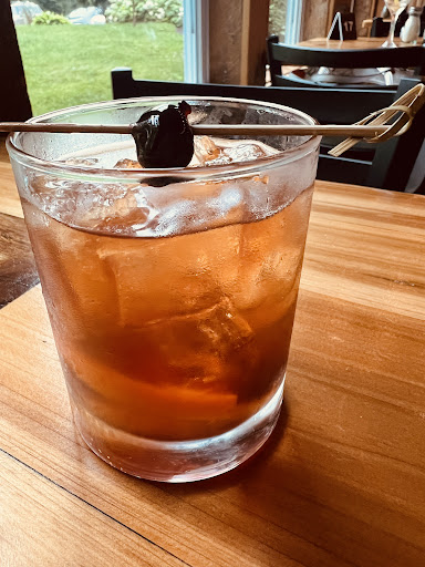 First the No 14 manhattan was perfect. Our server greeted us immediately and brought us the rustic bread and herb butter, very good and then we requested another round of bread. My husband also ordered the baked french onion cup of soup. He thought the cheese was different (not his favorite) and loved the soup base. It wasn't salty like some other places.