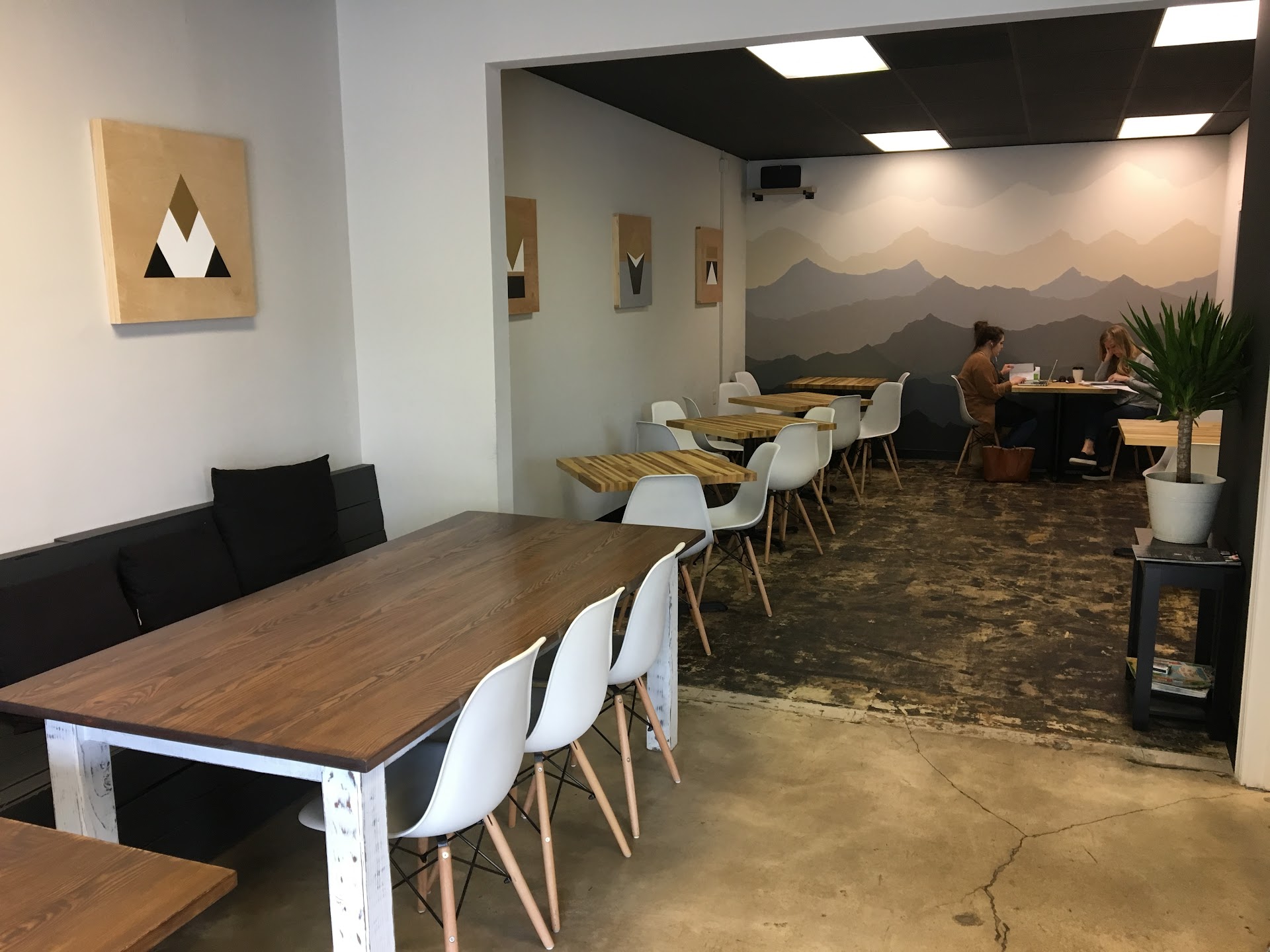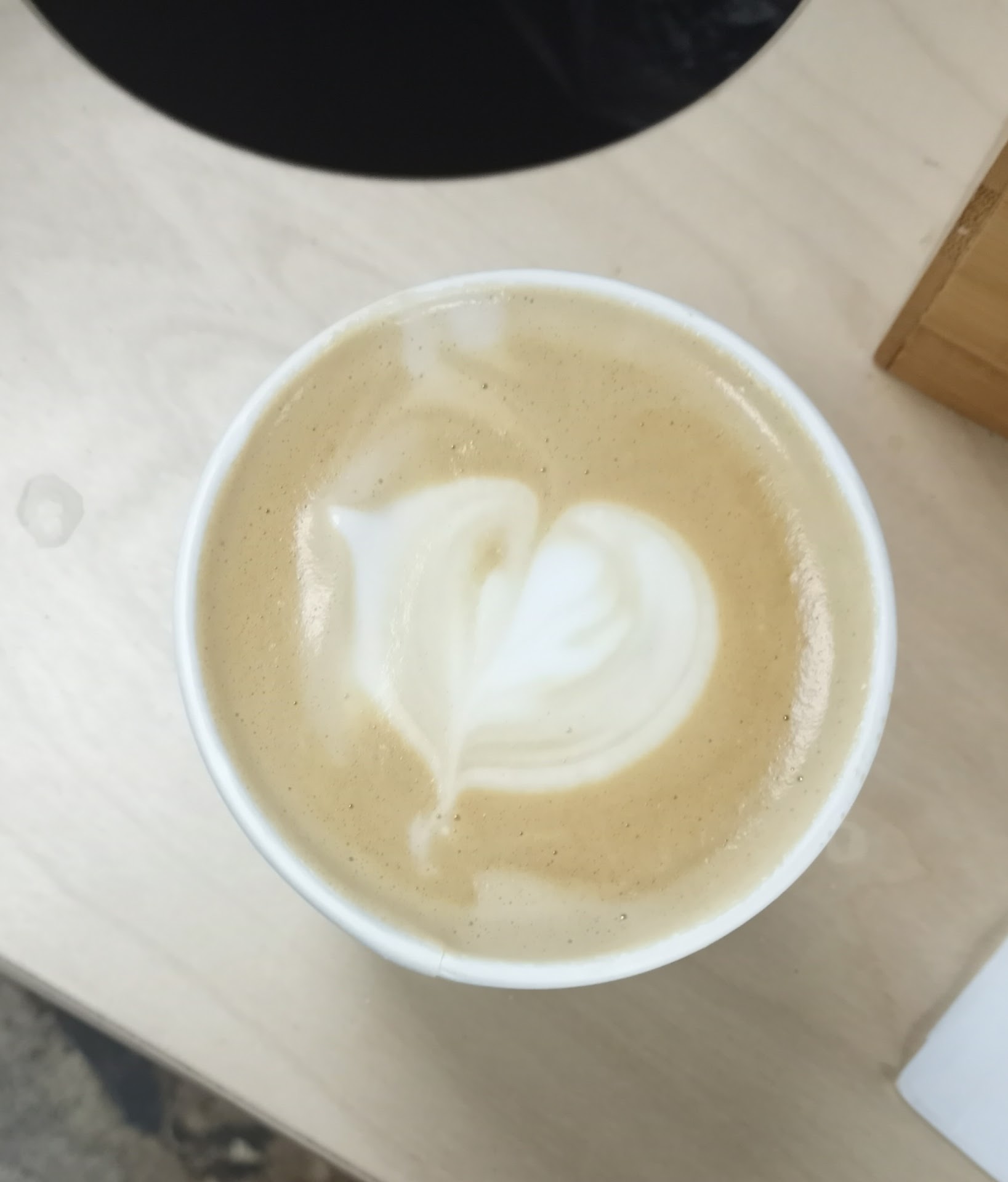 Constructive criticizem for owner or those that would appreciate it from a first time impression: serve hot coffee hot ( customers may stay longer, gives a well rounded experience, serving hot hits all customer preferences as it can cool down to anyone's desired temp, doesn't work the other way around) -have sugar and napkin station stocked at all times ( overstocked is better than under) ( customer feels as though they pay for the convenience of condiments to adjust coffee to preference and giving an overall better experience). When serving and focusing on coffee, you want to make it the best coffee and the best experience, it is the backbone of the Cafe. The condiment table is a good percentage of the coffees interactive functionalities and places a big weight on experience. the decoration is nice. Consider warming the area with texture, lights or indoor plants to give a more comfortable feel. Who knows if I am working and feel comfortable for longer, I may want a second coffee. Reasoning, floor is concrete. Tables are solid as expected and chairs are metal. Consider a leather chair or plant in the corner. Rearranging the table placement to give some angles, to minimize the convenience store feel, maybe some interesting portraits or black and white art or photography to look at while taking a break from working, something to hold the eye. The menu is good, but minimal, it doesn't include the additional types of coffee's that makes the people interact with the batista. It would be nice to have a better view of the details and prices. Clear pricing makes a confident customer without the bitter regret of overspending. If it is a favorite place it on the menu.