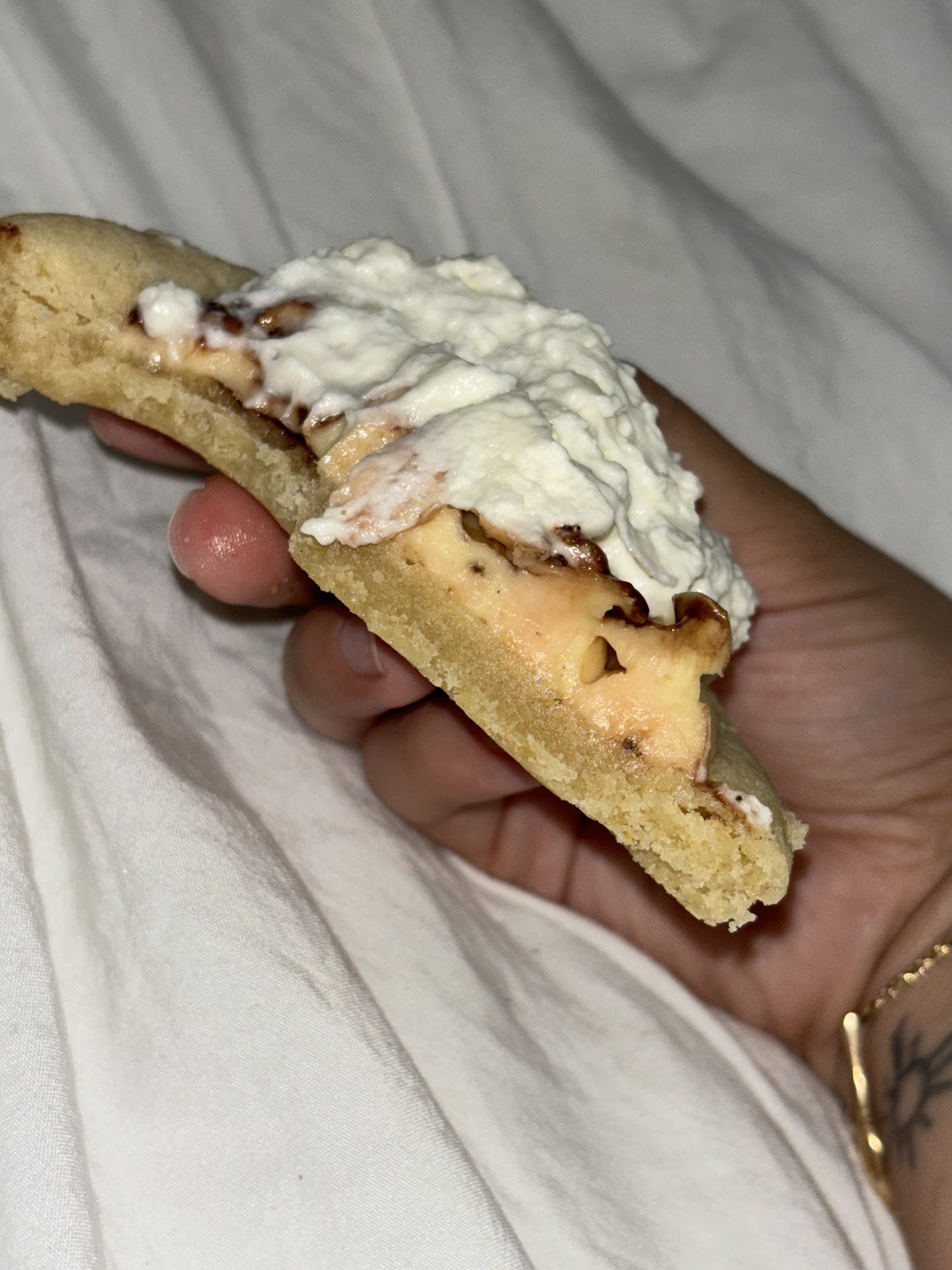 So I took the dive into trying Crumbl Cookies. Before I went, I looked at the menu online and I was stunned to see one chocolate chip cookie cost $5.99!! “One cookie costs that much?” I asked myself. So I just had to go down there to ask why one cookie costs so much: Was it because it’s made with cocaine? Or were they imported from China with a 3000% Tariff?? I just had to find out, and when I arrived, things started making a little more sense. Their $5.99 cookies are huge! I measured 4.5” diameter and 1/2” thick. So while I think that’s still a little pricey, I no longer thought it to be outrageous, so I begun my order.