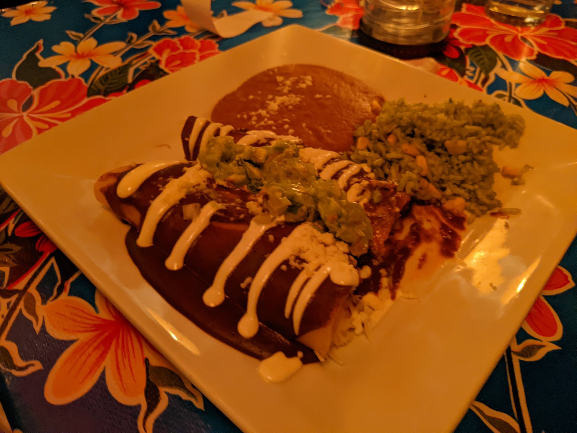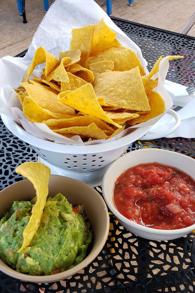 Chips and salsa are complimentary. Crisp, warm, not-greasy chips are served in a little colander. Salsa is house-made with crushed sweet tomatoes, onion and just enough jalapeno to add some kick without making your eyes water. Guacamole is always recommended, and it's excellent. Chunky, fresh avocado with onions, jalapeno and cilantro, also just enough kick to stimulate the taste buds.