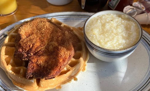 Read moreNice little home cooking spot with a hint of spice and everything nice. I tried the chicken and waffles. I added pecans to the waffle. The combo comes with two eggs. The chicken was seasoned well. It was really good, I didn't know what to expect because they used breadcrumbs instead of flour for batter. It's a chicken breast that is tenderized and covered in breadcrumbs, then fried. I like that they added two eggs in the combo because it adds more protein to help with the waffle. Its alot of food and it's seasoned very well. My friend ordered the Cuban sandwich, and it looked soooo good. Someone suggested this place for the shrimp and grits, but we were not ready for that today. We went around 10 am or 10:30 am. They had specials like : meatloaf with sides, stir-fry with side, hamburger steak, and more. They have a big variety of food dishes. I gave two stars for service because our waitress was missing in action. We had to ask the waiters to tell our waitress to come help us. Our service was bad, but considering how the other waiters were helping and checking on their areas showed that this was the work culture of the restaurant staff. It was just her. I like the location and people of all colors were eating there. They do have a bar, and they do service drinks. One to add to the list of...