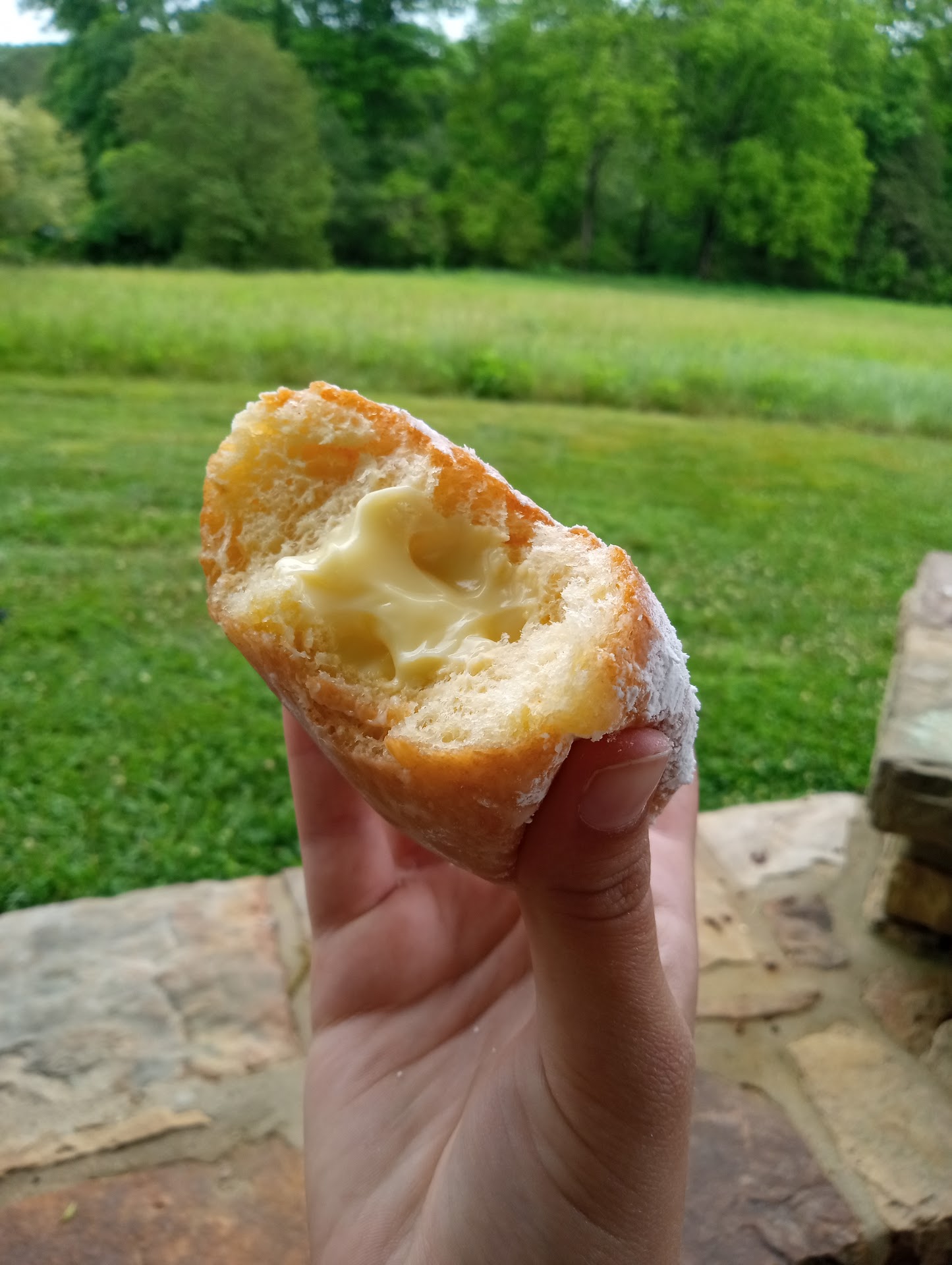 My wife had what looked like a Bavarian cream donut, but you can get it filled with several different kinds of filling at the time of purchase. Why didnât anyone think of this before?! Iâm sure it can be a bit more time consuming, but a great idea.