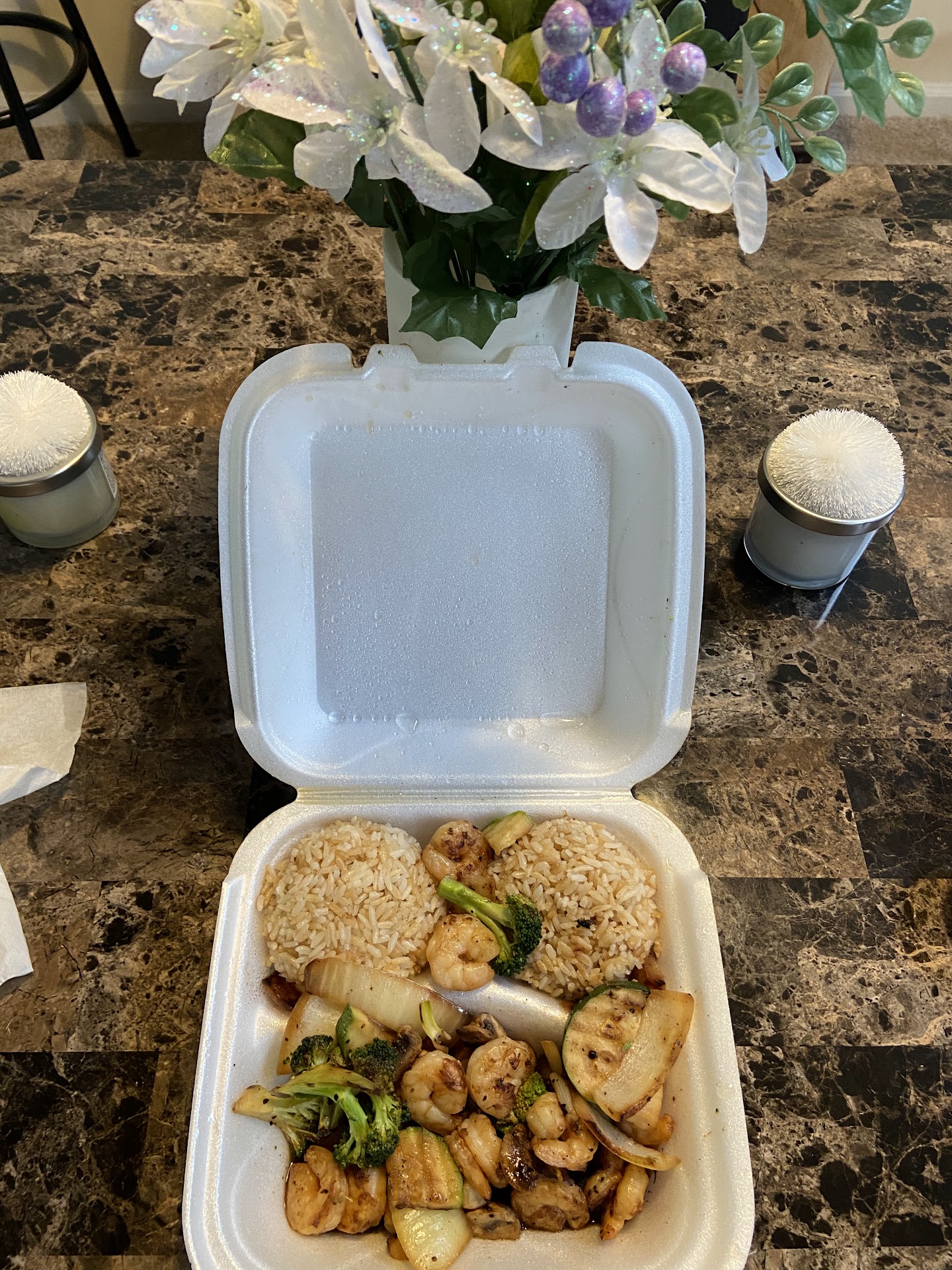 Order take out from here last night on my way home after shopping in the area. I ordered chicken and shrimp hibachi. The rice was slightly burnt and the meats overcooked. But I'm not even concerned about that. I'm concerned about finding what appeared to look like a small spider in my rice. I was only a few bites into my food thank goodness but it was definitely not broccoli. Now yes I was upset and immediately called the restaurant and left a message but I suppose they were gone for the evening due to it was right after closing. However I got no return call in the morning or afternoon and ended up calling myself in which the manager in my opinion rudely blew me off when I addressed my issue. Pretty much offered excuses and no solutions. Eventually told me to bring the food back and that's the only way he'll give my money back. I live 1 hr away. I was passing through and further more who's gonna keep food that long til I'm able to get back up that way again. I told him I had my receipt and pictures of the food and spider. He pretty much hung up on me at that point. I will never eat here again and I can't advise anyone else either. I know things happen and a small insect can get into a bag of rice that's common sense. Or could have crawled on my plate who knows. I wasn't making issue with that fact. My issue is with the lack of customer service I was offered. Whether you're a new business or old business, your doors only stay open long term if you know how to treat...