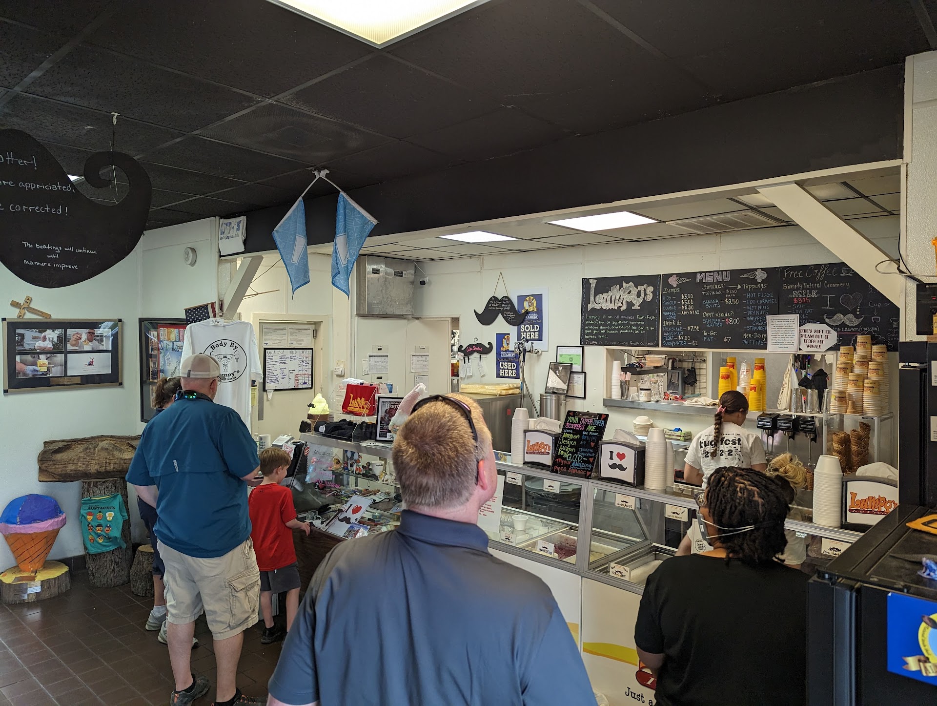 This review has been a long time waiting. I happened to stumble across this lovely little spot one day when I was pregnant with my daughter. My big craving was ice cream and I went to cold stone at least 6 times a week. One night I traveled half an hour to cold stone for some ice cream and got their about 3 minutes before closing and they didn’t let me in. I was heart broken, however, I still wanted ice cream. So I looked up places near by, and Lumpy’s popped up. I figured I’d give It a try. When I pulled up, I noticed the “Open” sign was turned off and the store had actually closed about 10 minutes prior to my arrival, so I turned my car back on and was about to leave when I saw a worker wave his hand for me to go inside. He greeted me, and walked me through every flavor they had. He informed me that they are all home made and uniquely made. I tasted EVERY flavor that night and had an amazing experience. This was well over 6 months ago and It was the BEST decision I’ve ever made. My family and I are life customers. From the staff, to the unique flavors, to the big ol’ mustache. This place is the best ice cream place ever. It’s more than just selling ice cream here. Its about giving people a little bit of happiness one scoop at a time. The kindness that every employee has is just incredible. More people should know about this place. Cold stone wouldn’t let me in 3 minutes before closing, but LUMPY’S let me in 10 minutes after they had closed. It’s honestly the little things like that, that set apart big companies from a local business. I’m so grateful to cold stone for not letting me in that night. Because Lumpy’s is hands down the greatest place ever. I recommend It...
