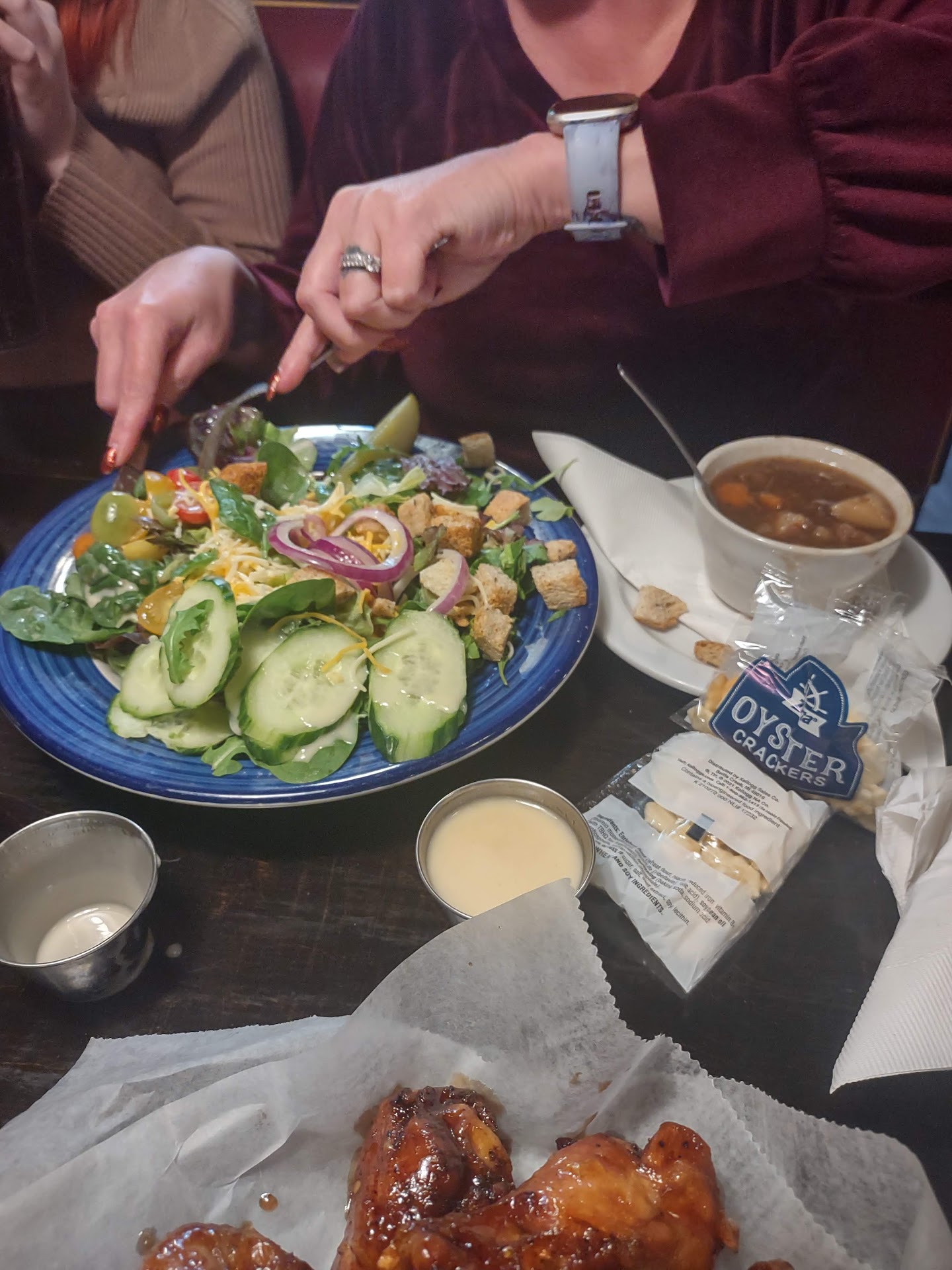 So after checking several of our more regular restaurants for a Saturday evening dinner and finding all of them packed to the gills with lines out the door we decided to give Pat Murnane's a chance Parking lot had a few cars but not overcrowded as we entered the pub area was about a third build we were shown to the dining area there was one party maybe 10 folks who already had their food and one other couple sitting at a small paper Our 4 made up the second group in the dining area and then a second couple joined about 15 minutes late The one waitress who was handling the dining area did not seem to be in a hurry about anything and seem to be extremely overwhelmed This did not prevent her from spending most of the time when she wasn't walking by tables avoiding looking and making eye contact on her phone at the weight stand When she did interact she was polite and pleasant but was definitely not service oriented in the glasses were ignored and there was no serious inquiry as to how the food or the experience was going Speaking of the food everything was delicious and cold and/or slightly overcooked the sauces and flavors were impeccable delicious flavorful but everything had a leftover taste because obviously it was either precooked and not brought up the temperature or it was set on the station to deliver the tables and the waitress just couldn't handle the volume One couple made a very pronounced loud complaint to the manager half-heartedly apologized and maintained a look of boredom and obvious contempt for the woman's complaint he quickly gathered their food up obviously microwaved it and brought it back within 30 seconds quickest thing that happened all night The pub area in the meantime had totally filled up and it did not look like much food was going that direction so whatever the problem is is either in the kitchen or the before mentioned disinterested overworked wait stuff Definitely would recommend this place if you're going into the bar services speedy quick and obviously the emphasis family dining I'd...