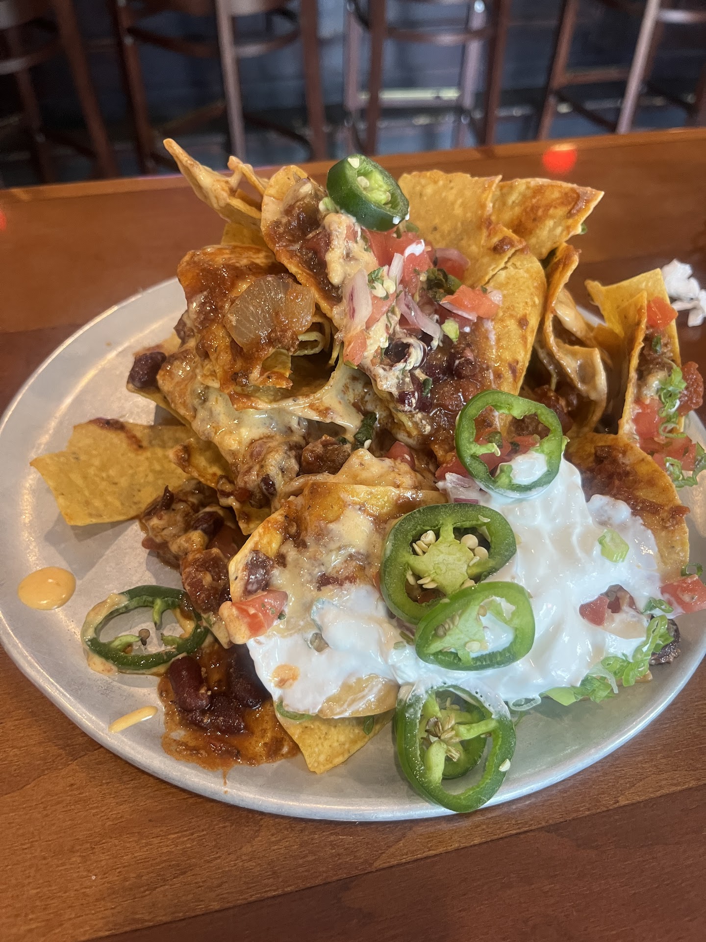 Nachos with Chili: 7.2/10 - The nachos are served in a unique and entertaining manner, directly from a smoker can, which adds a theatrical element to the meal. The chili is flavorful and well-spiced, complementing the crispy nachos well, although some chips do become soggy. The price is on the higher side, which might not align with the value expected by...