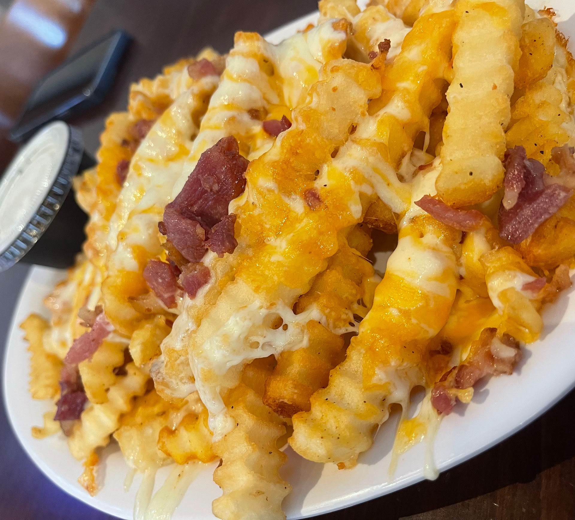 We have visited this location a ton of times and the service is always pretty good and the food usually is as well. During the pandemic I was told by a manager that they switched distributors for their wings due to the chicken wing shortage and the price had gone up a bit but the wings got much smaller so we stopped going up to Rudino’s. One day we decided to give them another shot and they had surprisingly switched back to the bigger juicier wings, they were still market price but I’m ok with that so long as the wings are decent. We stopped back in the other night and ordered 30 wings and they are back to being small again. We had to ask for extra sauce because wings that small dry out much quicker. These small wings are not worth the price and we probably won’t be back unless they switch back, it’s a shame because the rest of the food is pretty good and their wings sauces are all really good too. So just an FYI before you make the plunge, these are not the same size wings like you would normally get from somewhere like Over The Falls, Pickled Onion, or Ale House in the area. Which is a shame because Rudino’s wings were honestly better than those...